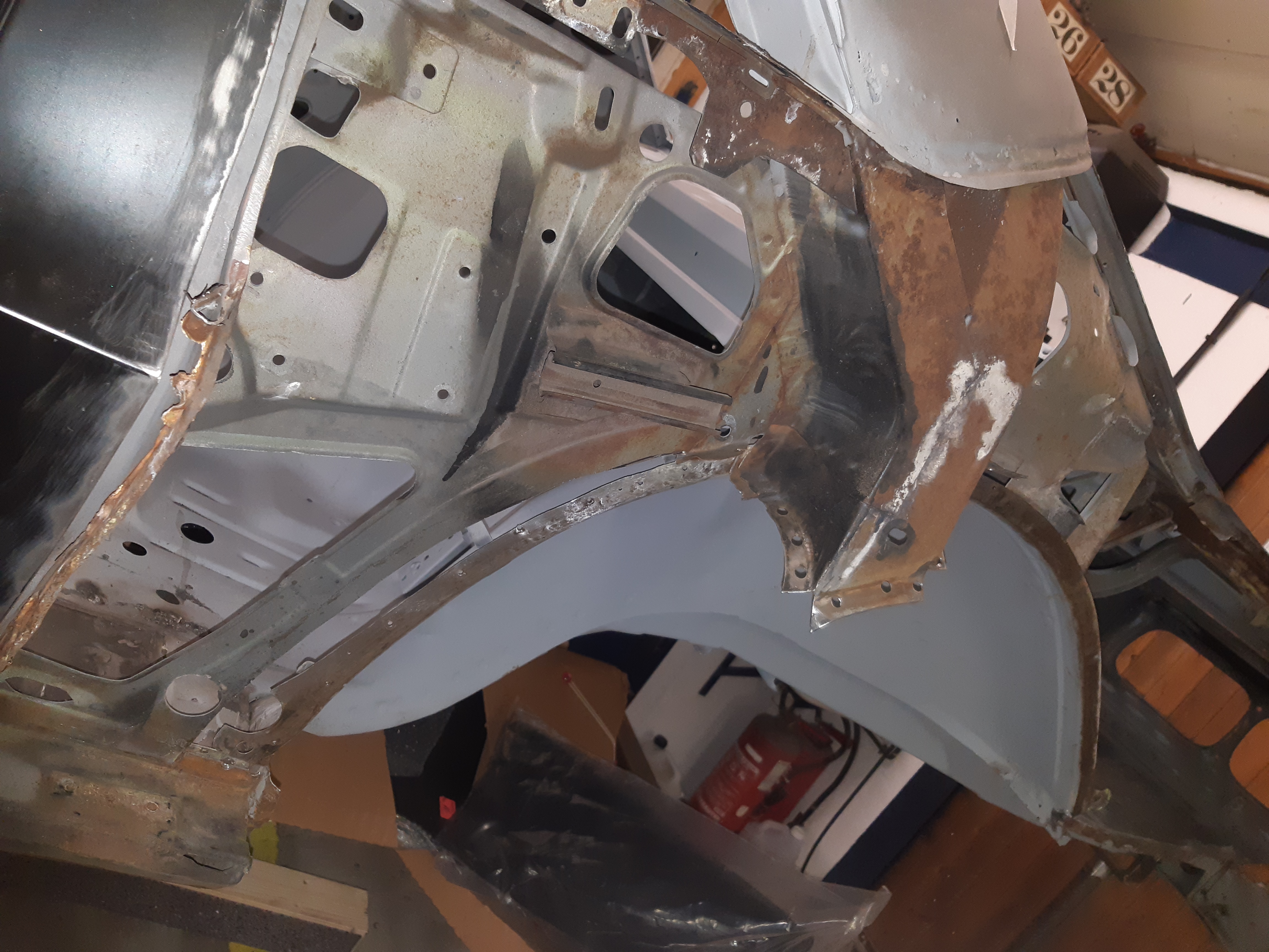 Présentation pour ajustement du passage de roue et du coffre... Et réparation du tour de coffre...