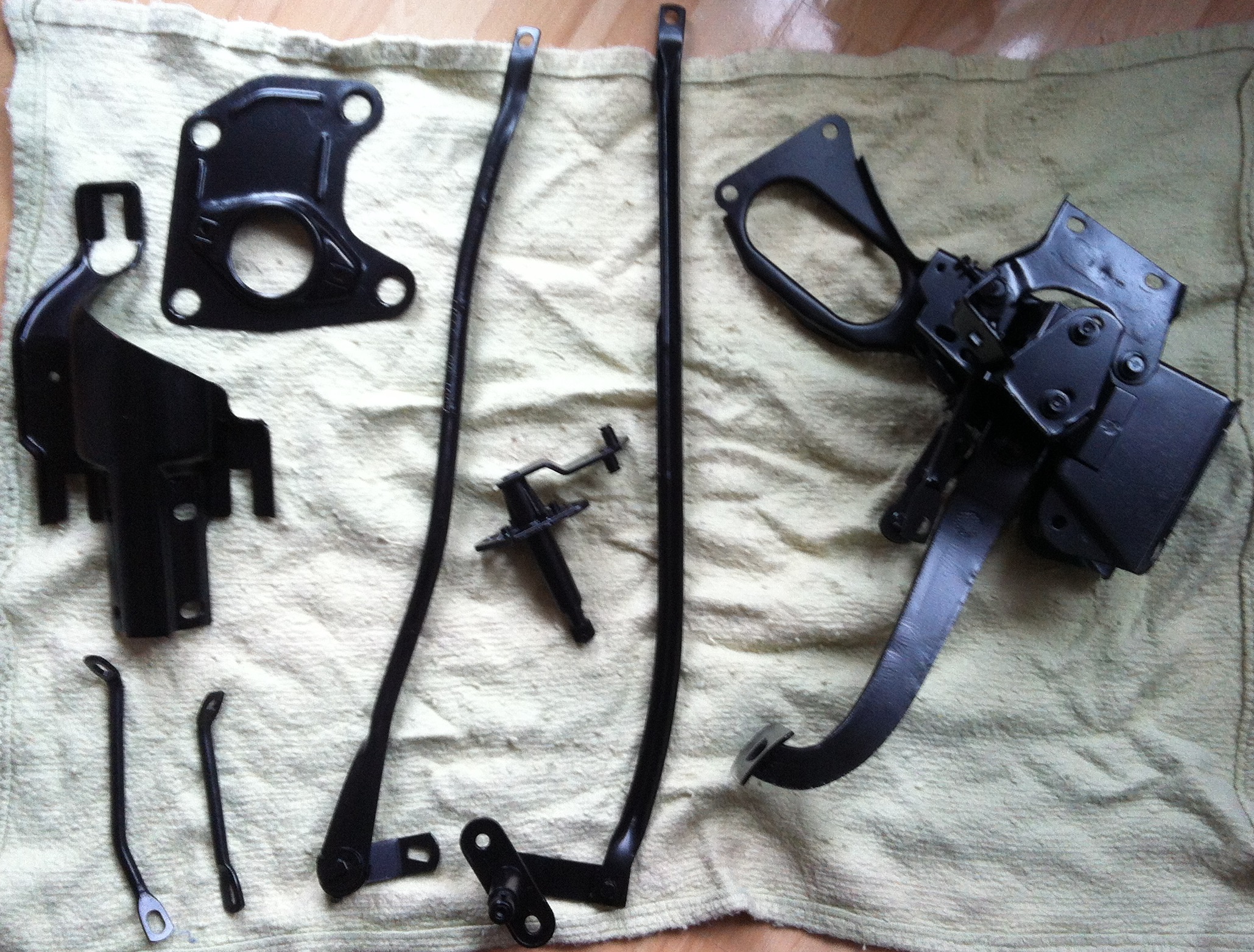 La pédale de frein et son mécanisme, le frein à main, et divers autres éléments intérieurs sortent du sablage et de l'epoxy.