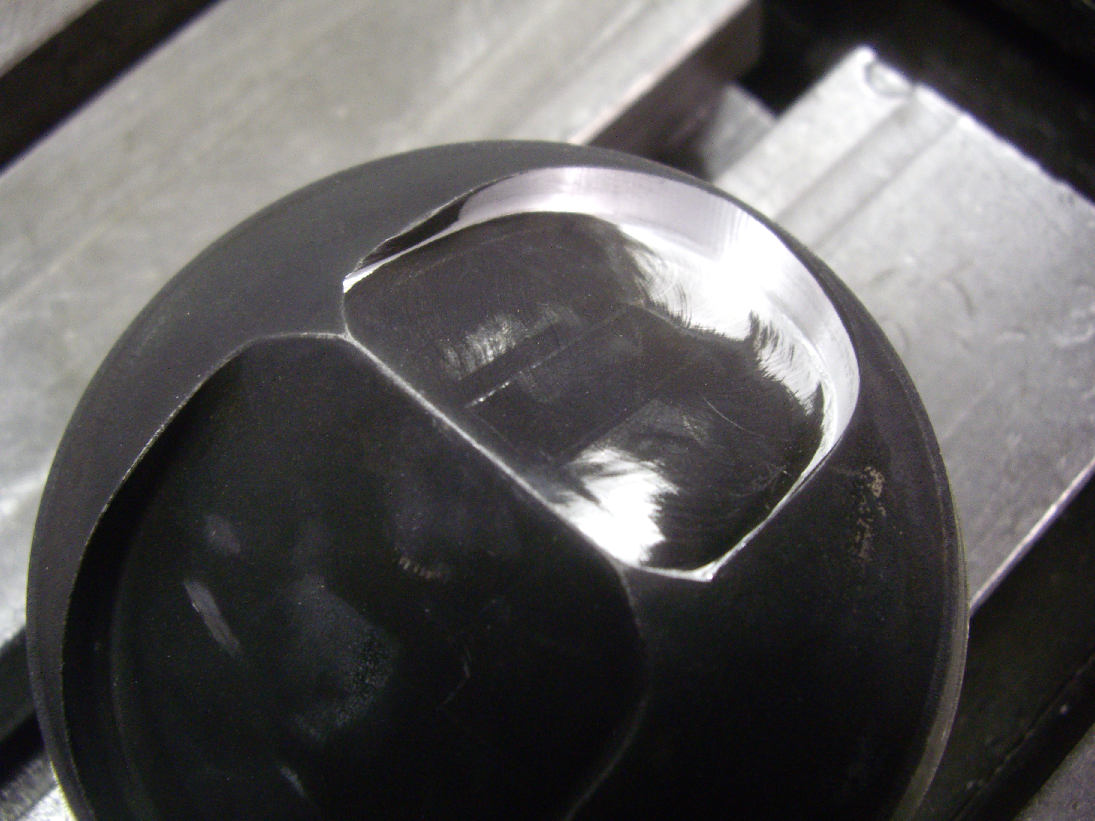 ... de la reprise d'empreinte de soupape sur des pistons.