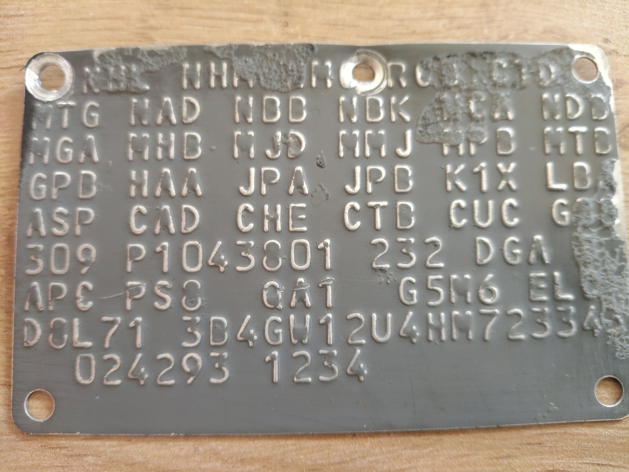 Normalement avec le SHOP MANUAL constructeur tu devrais pouvoir decoder ton fender tag qui se trouve sous la tôle ou sont les essuie glaces au dessus bloc chauffage /clim.