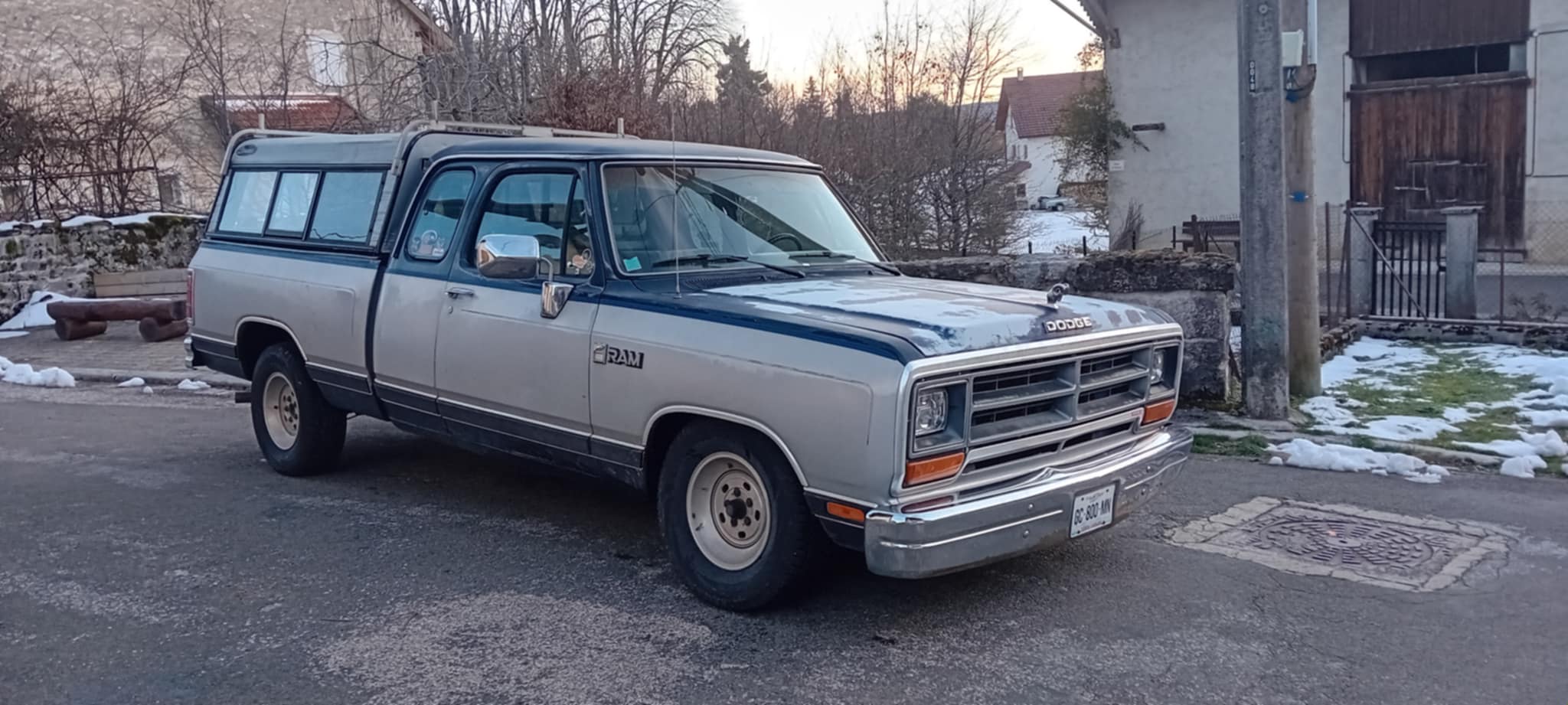 L'ancien proprio ayant fait le choix de la repeindre dans un bleu mopar, ce bleu la n'existait qu'avec un toit vynil blanc, il a poussé le changement jusqu'au bout aha