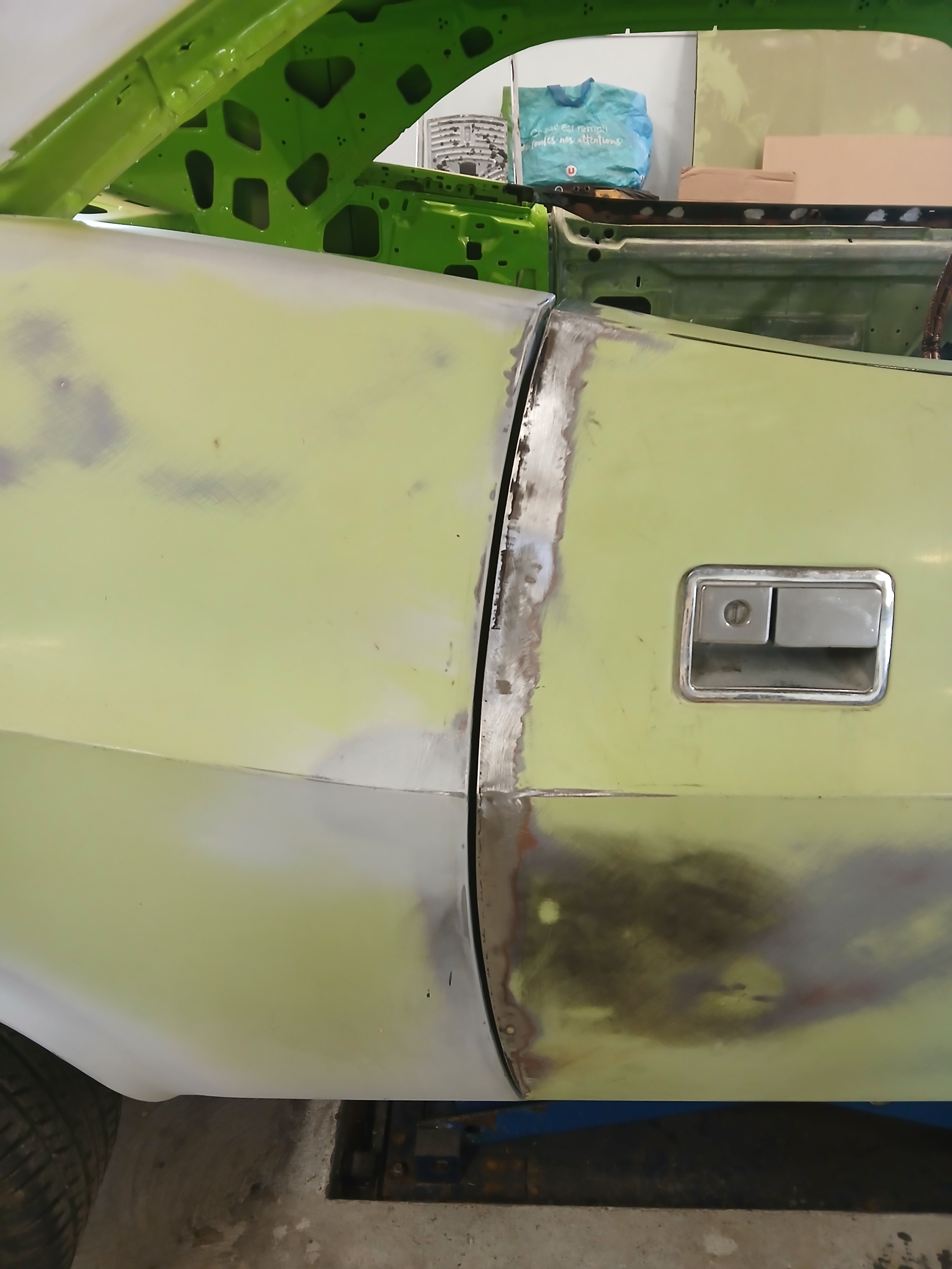 J'ai fini l'alignement des panneaux doté droit , rechargé un peu les arrêtes de portière pour égaliser les jours , et fait quelques patch par-çi par-là ...