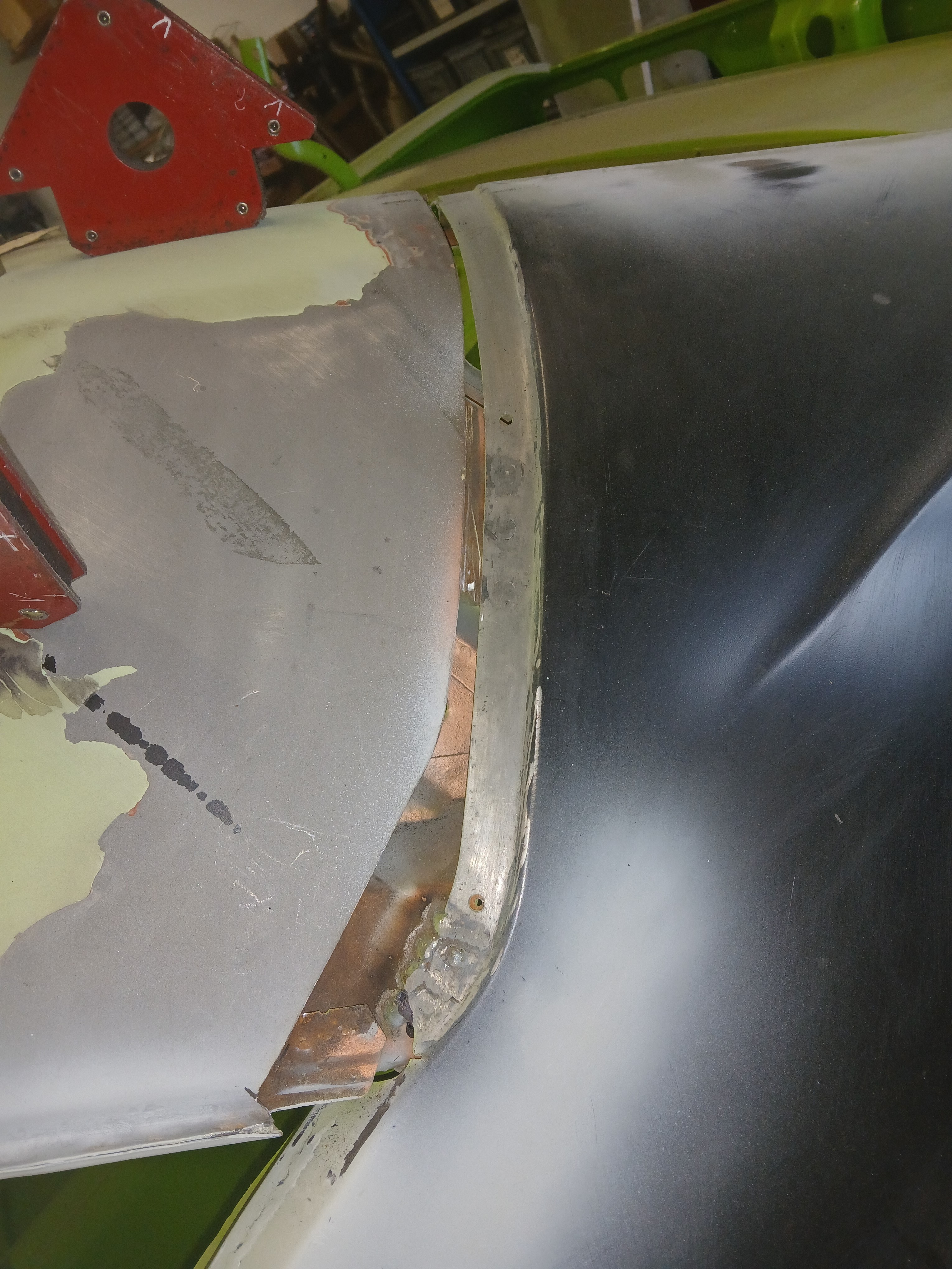 mise en place et ajustement de l'aile avant droite ,plutôt content du résultat ! il a fallut découper et déplacer la fixation inférieur de l'aile et courber un peu le renfort mais l'ajustement est pas mal