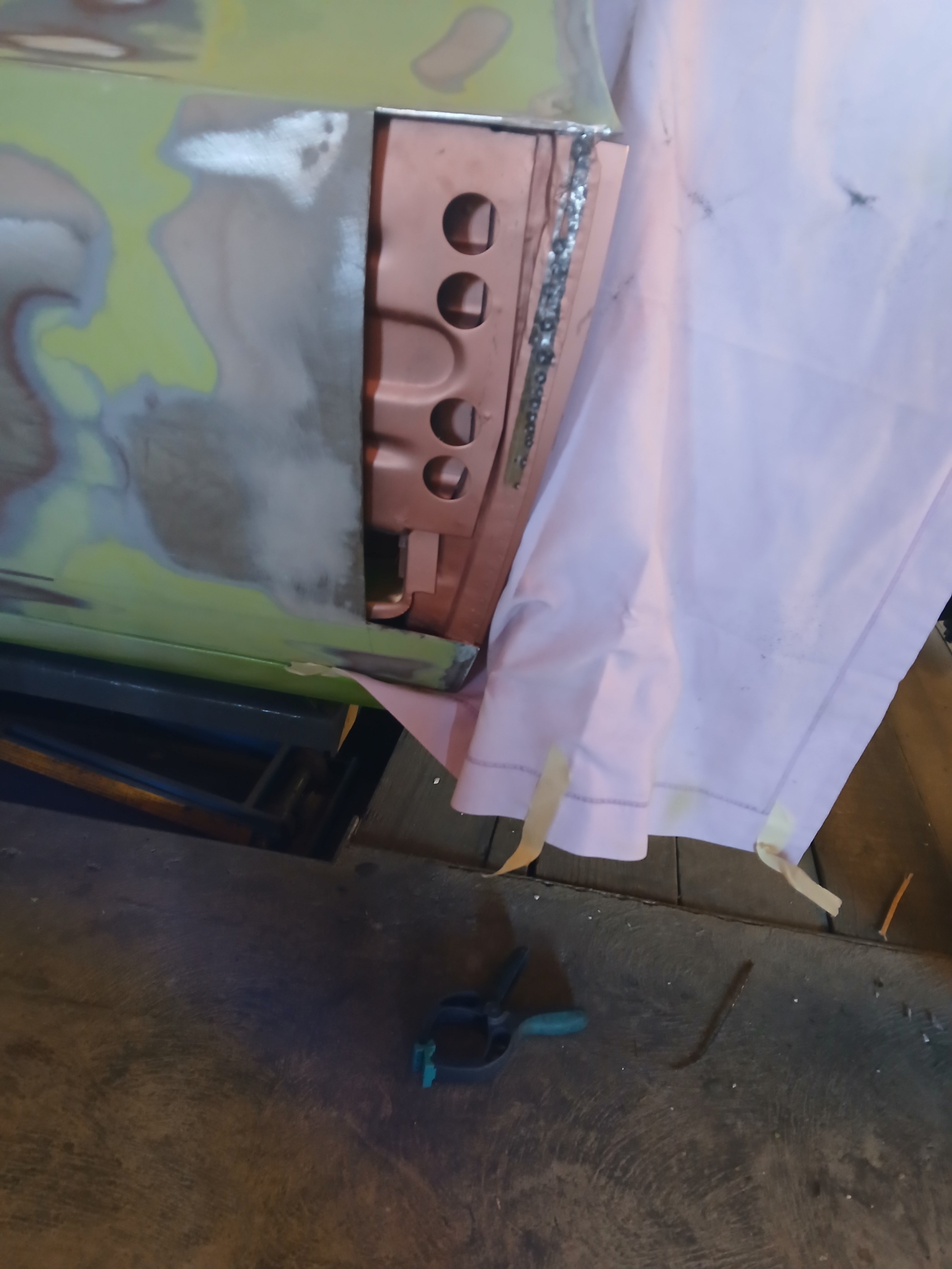 non , ça va , les renforts empèche de taper les soudures , j'ai fait où je pouvais , le retreint de la tôle fait que l'ensemble est un peu en retrait mais un peu de mastic alu devrait suffire... j'espère :D