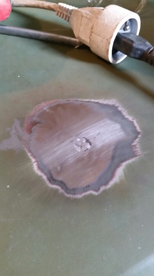 Sur les trous de l'emblème j'ai uniquement utilisé la baguette d'apport et ça l'a fait comme papa dans .....