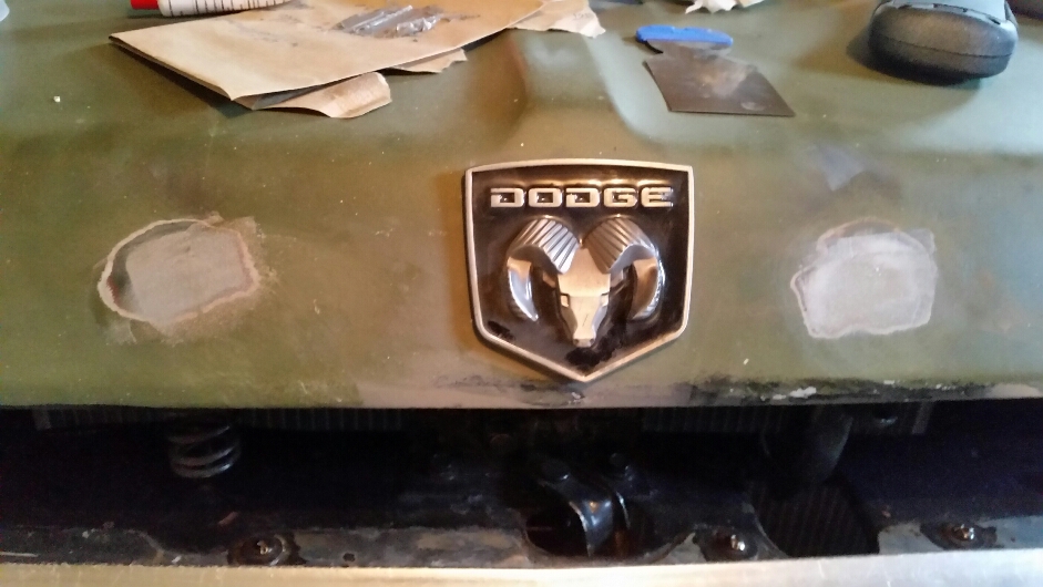 Sur mon capot et les trous qu'avait fait l'ancien proprio pour mettre ses klaxons de bateau