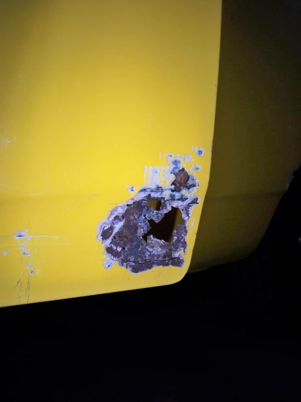 Tous les trous que vous allez voir sur la carrosserie étaient rebouchés au mastic!!
