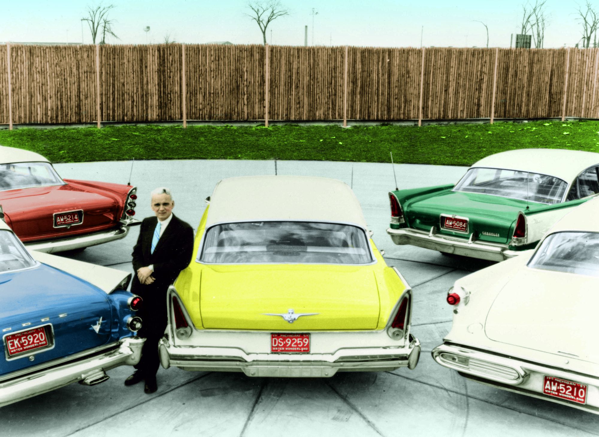 Merci, c'est lui qui a tout fait, retour en 1956, Virgil Exner dessine la bête dans les bureaux de Détroit, un designer de génie
