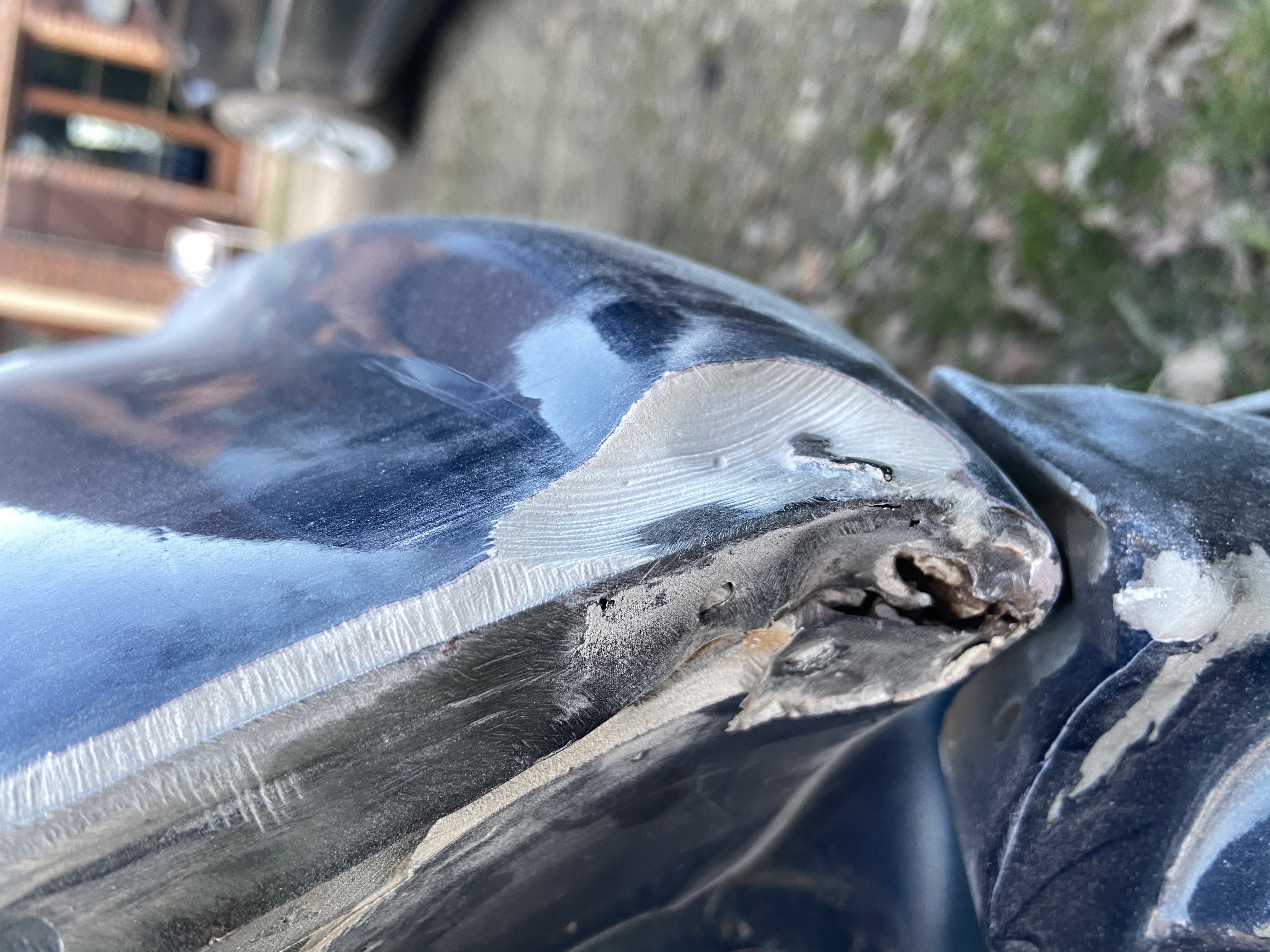 Résultat un bas de caisse "récent" poser par dessus l'ancien le tout fixer au rivet , une quantité de synto pas croyable ( par endroit bien plus d'1cm )
