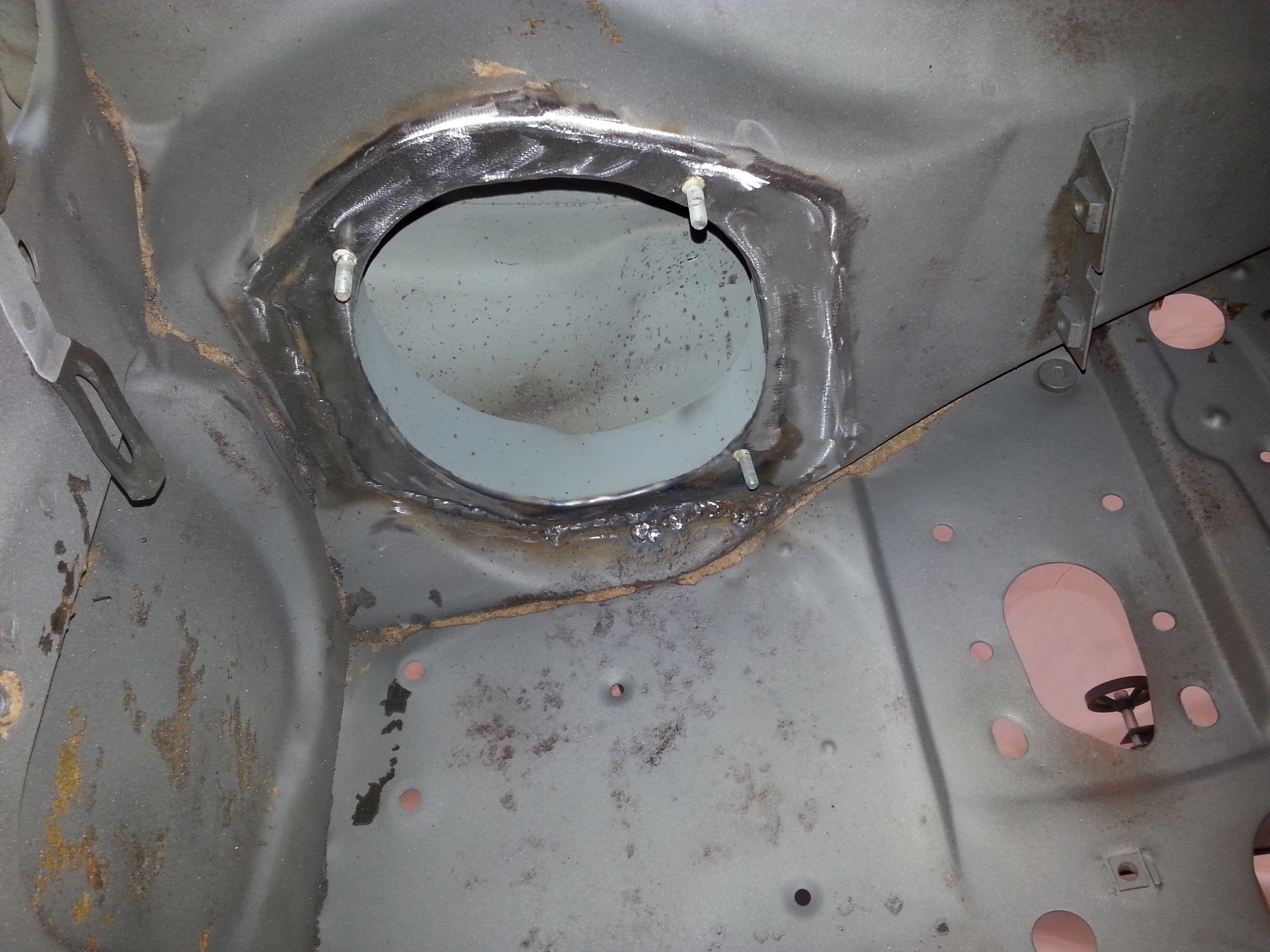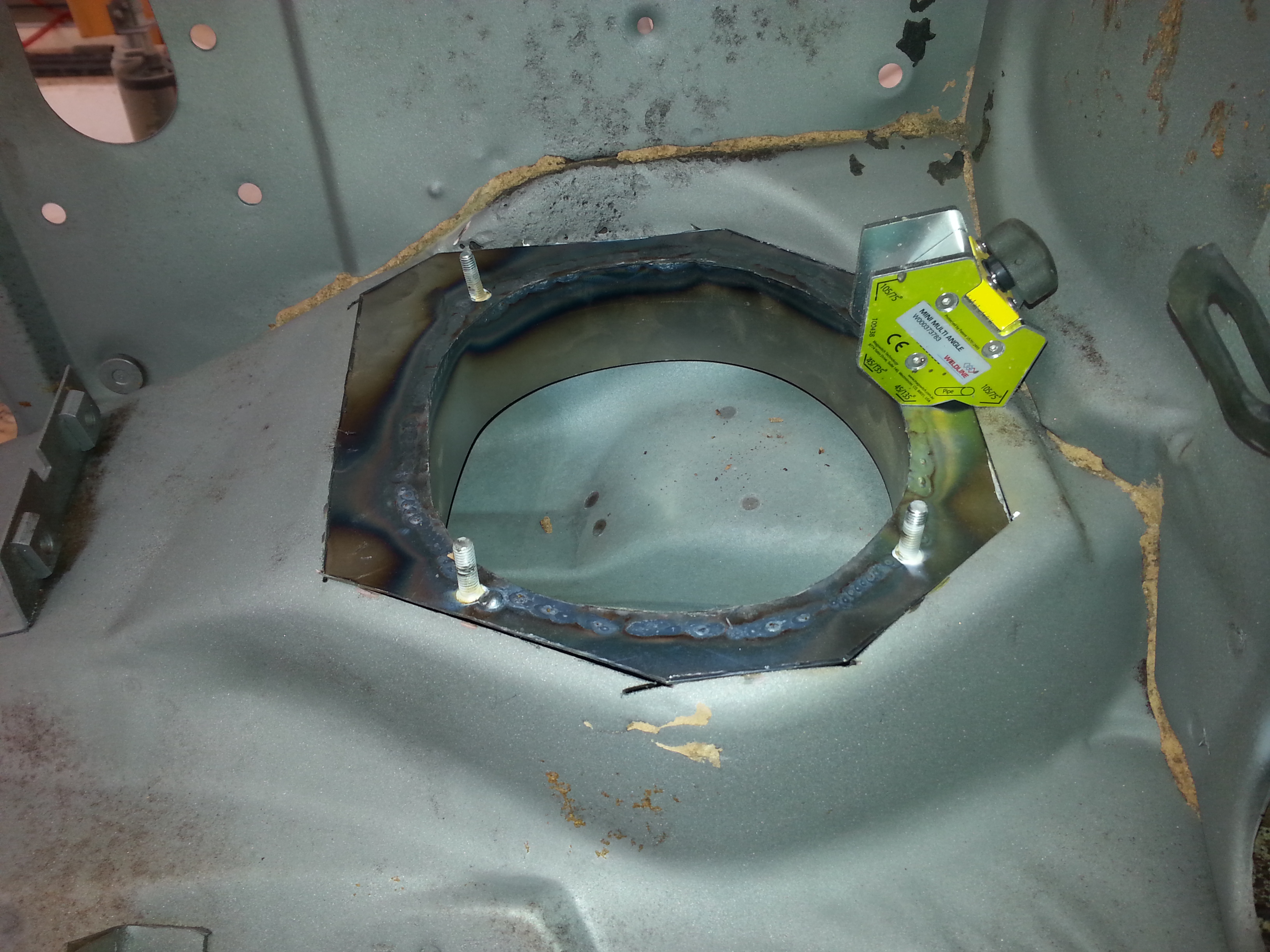 soudure de la goulotte d'entrée d'air sous le tableau de bord à gauche