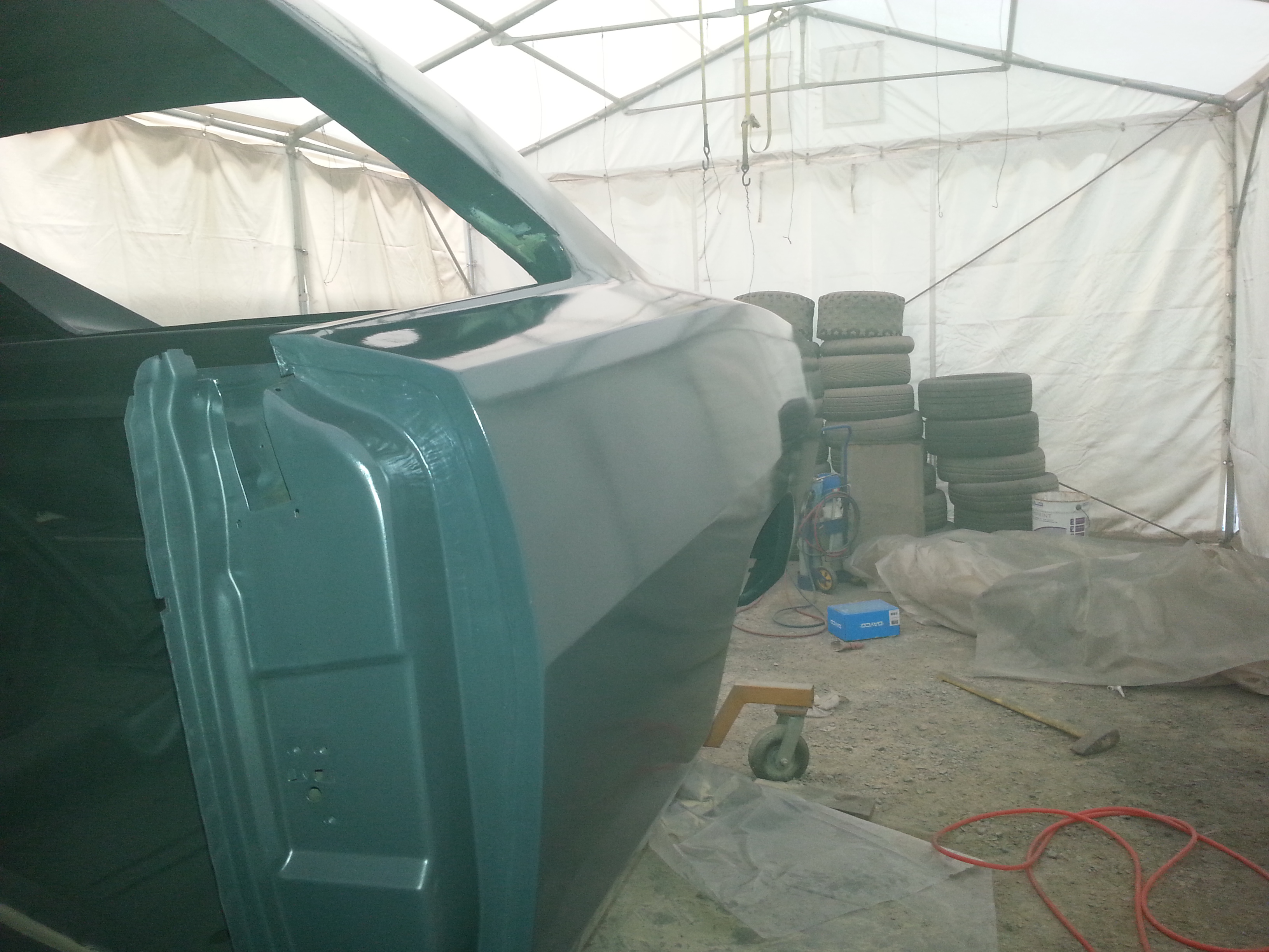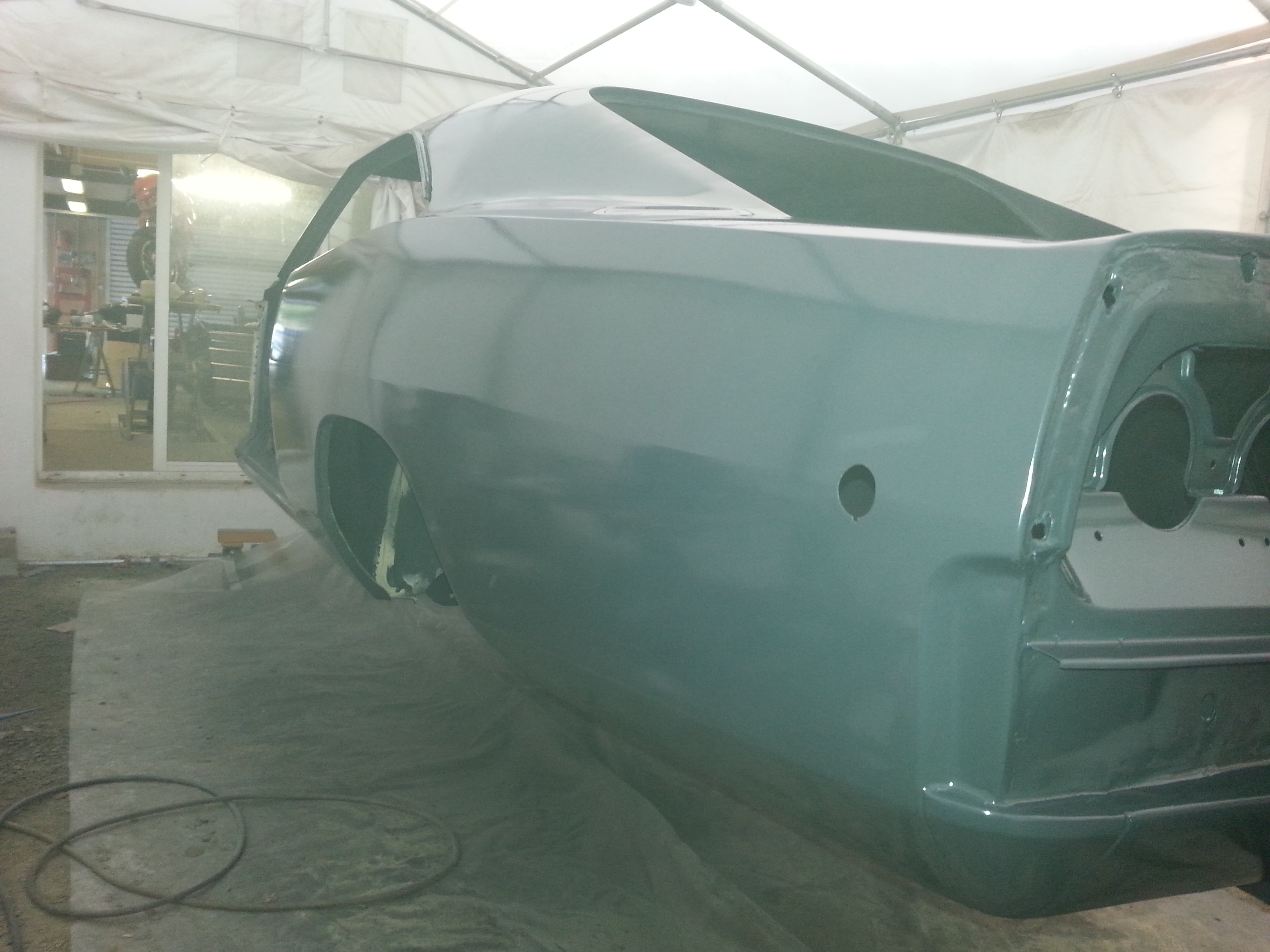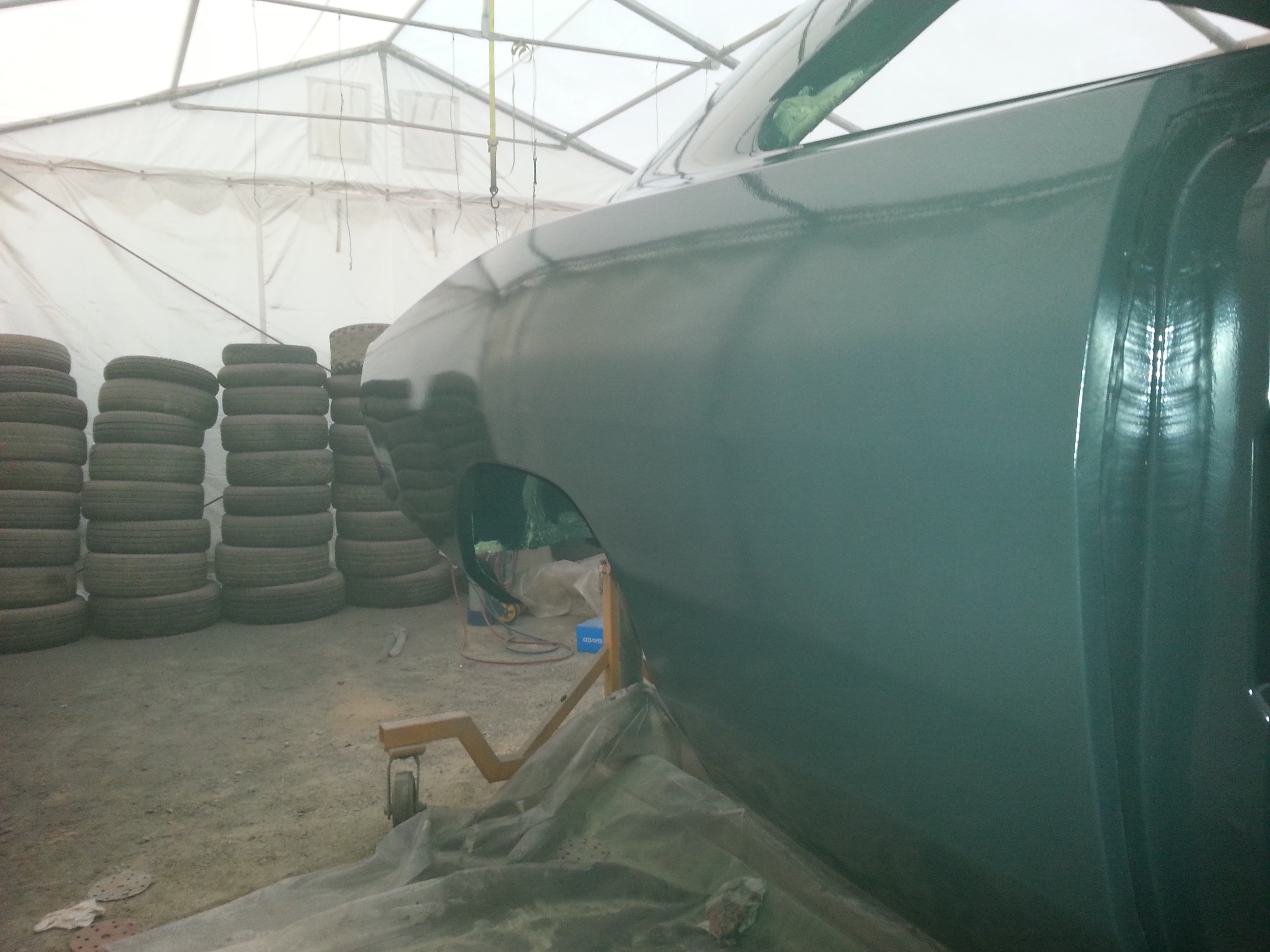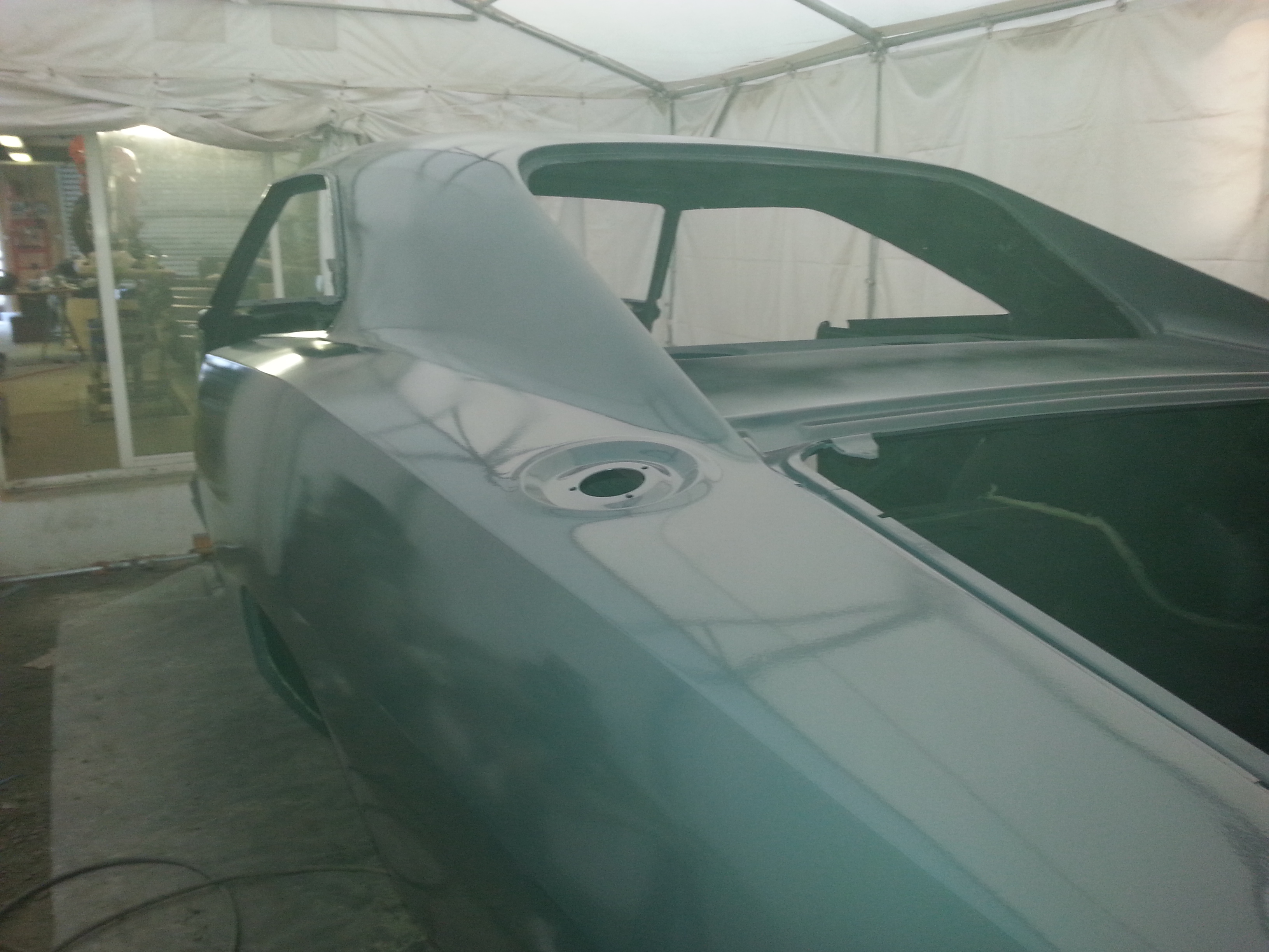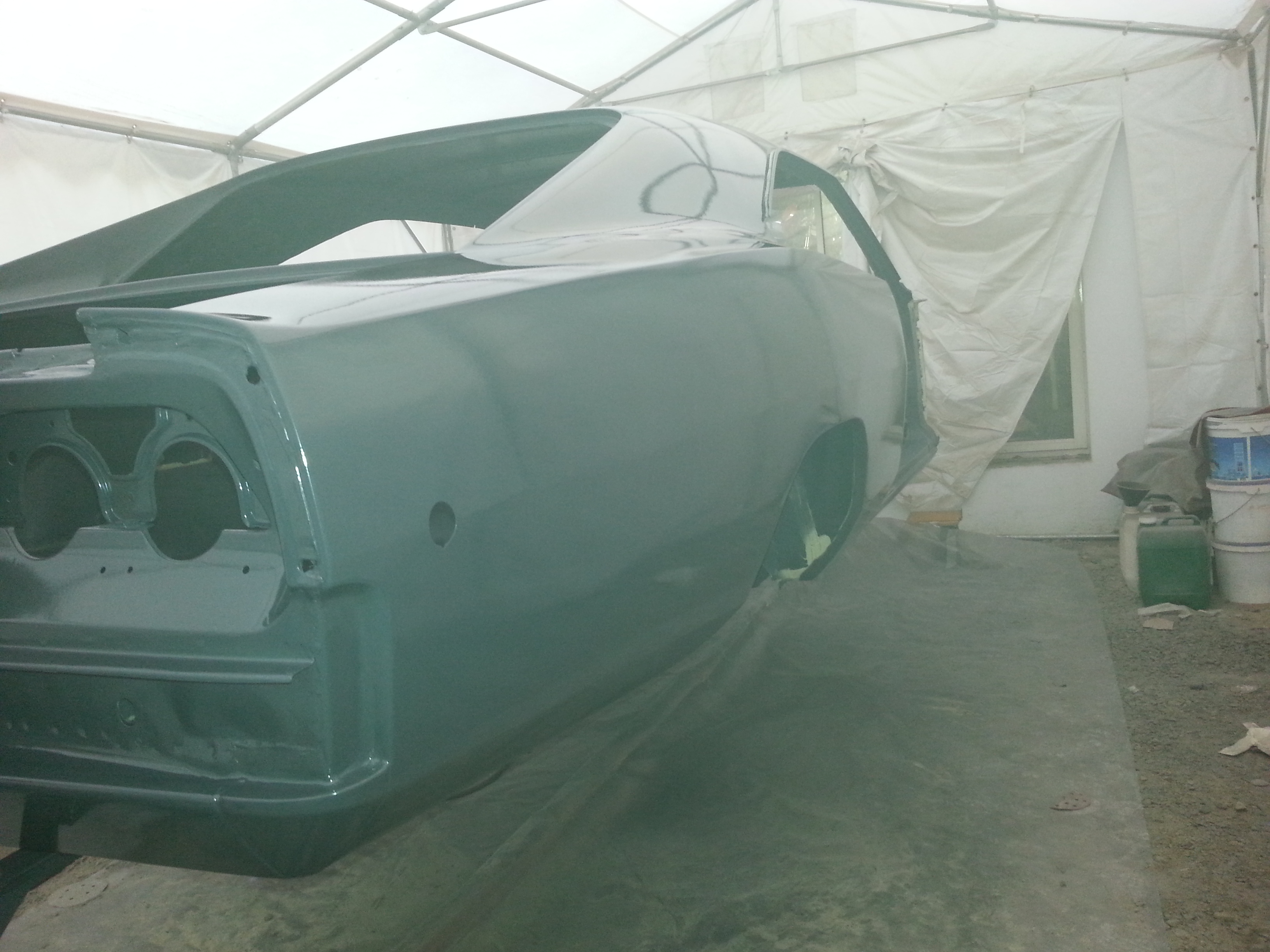 Du coup, j'ai fini quelques reprises de carrosserie sur les ailes arrières (y avait des défauts qui ne me plaisaient pas) et apprêté tout ça. Ça me convient maintenant...