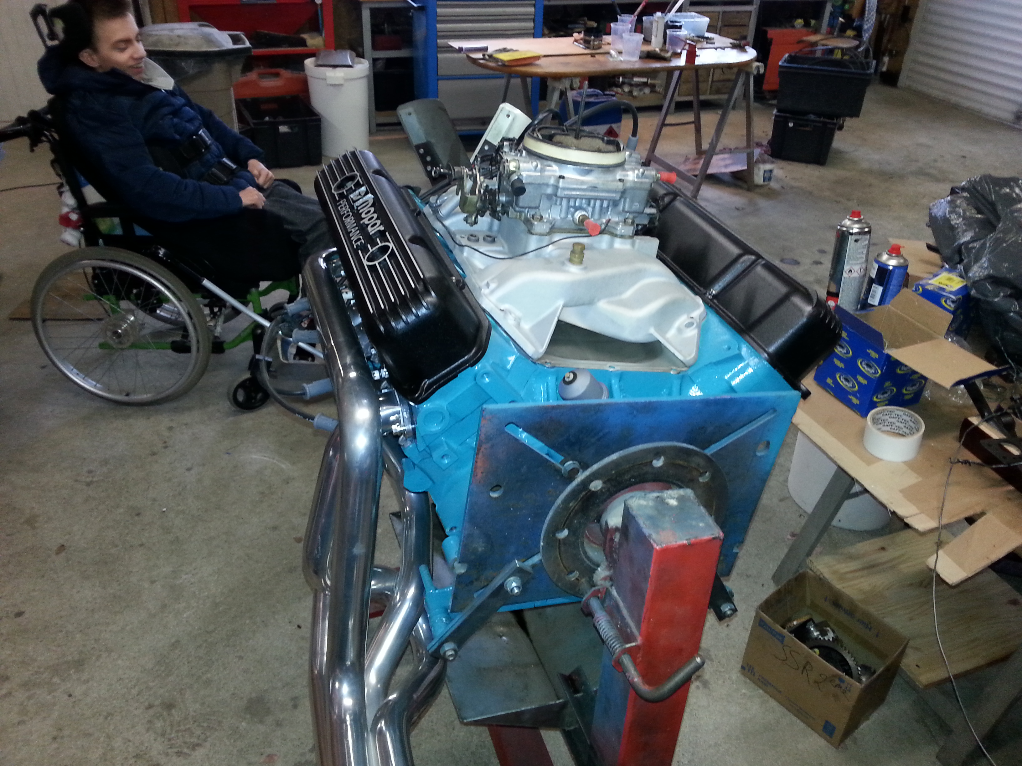 pistons KB 400, arbre à cames "midle cam", collecteur adm edelbrock performer, allumeur MSD ready to run, 4 en 1, ligne inox...
