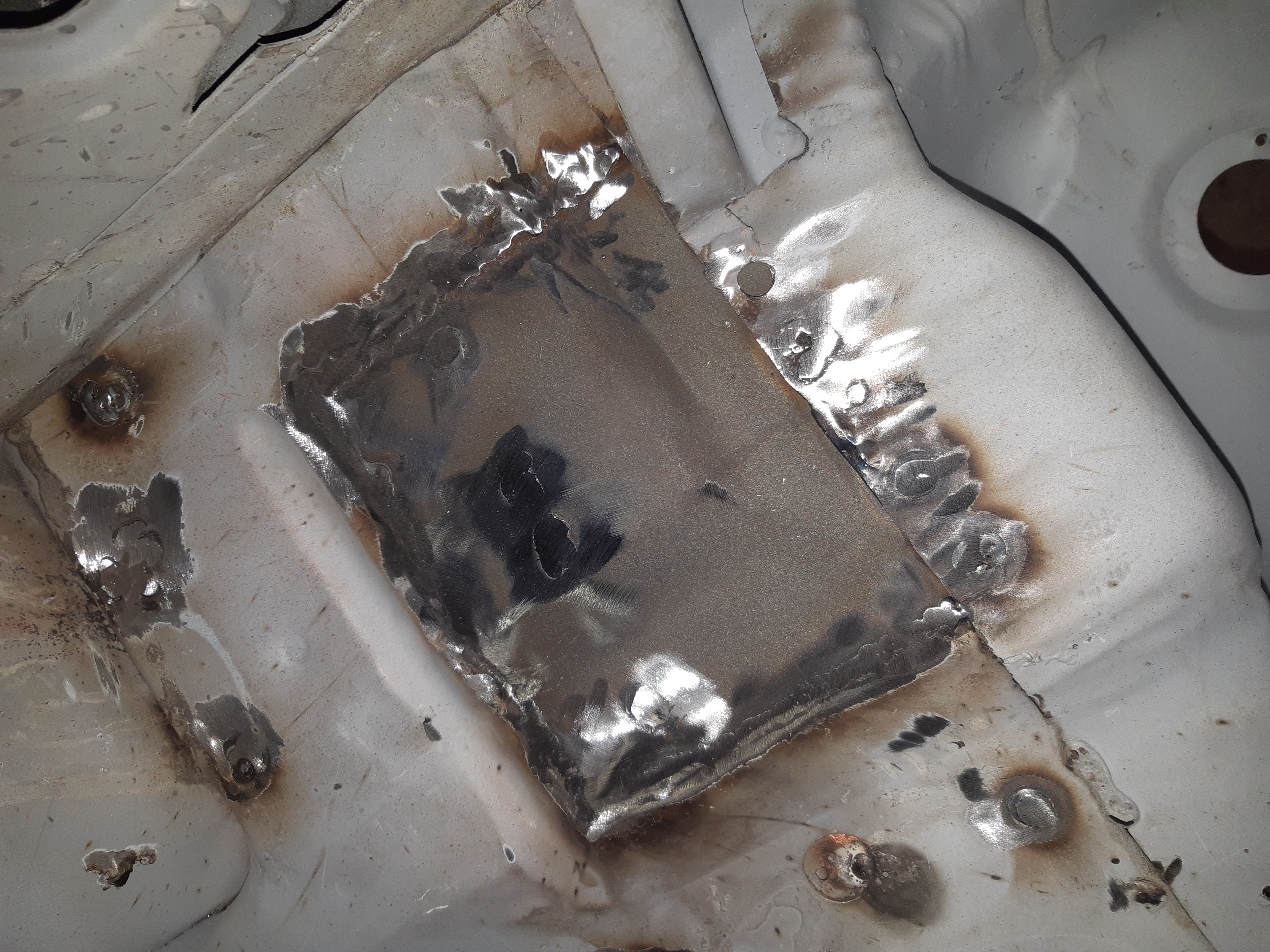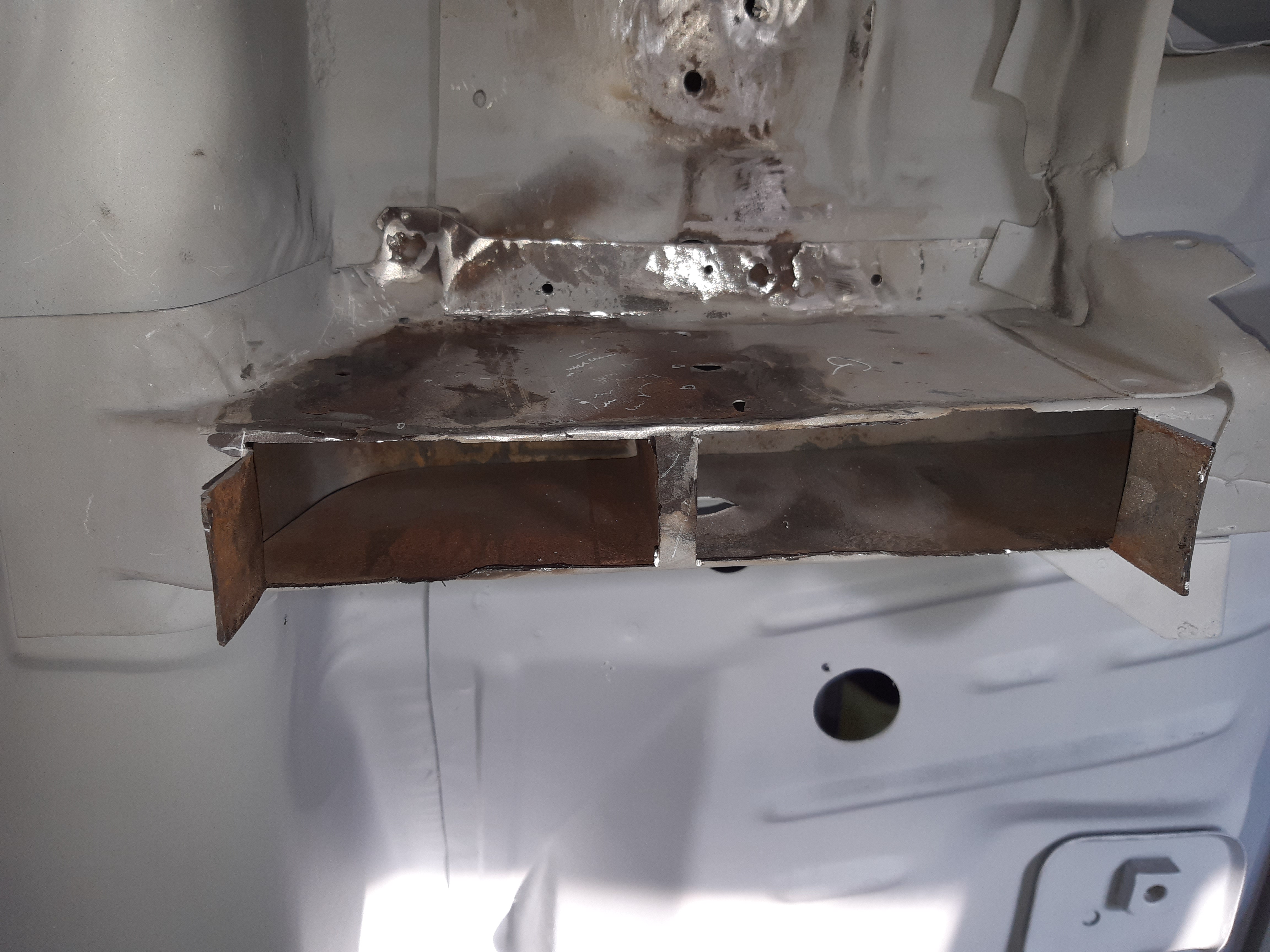 Si je peux me permettre car le l’ai vecu, il ne faut jamais souder tes elements pris en sandwich comme tu as fait, car la rouille arrivera tres vite entre les toles. En soudant tu vires « l’anti rouille » d’origine. Et tu as beau mettre un joint, cire... ben par la suite...