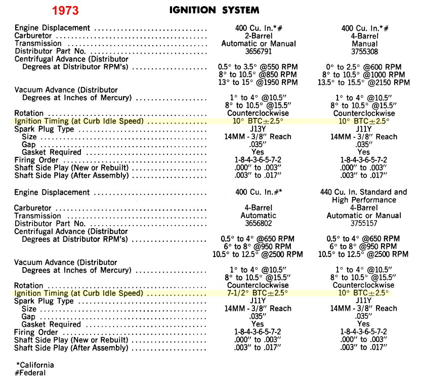 Pour l'allumage, sur un 400ci de 77 tu préconise quoi? au ralenti et à 3000 sachant qu'au ralenti au neutre j'suis sur 800tr min