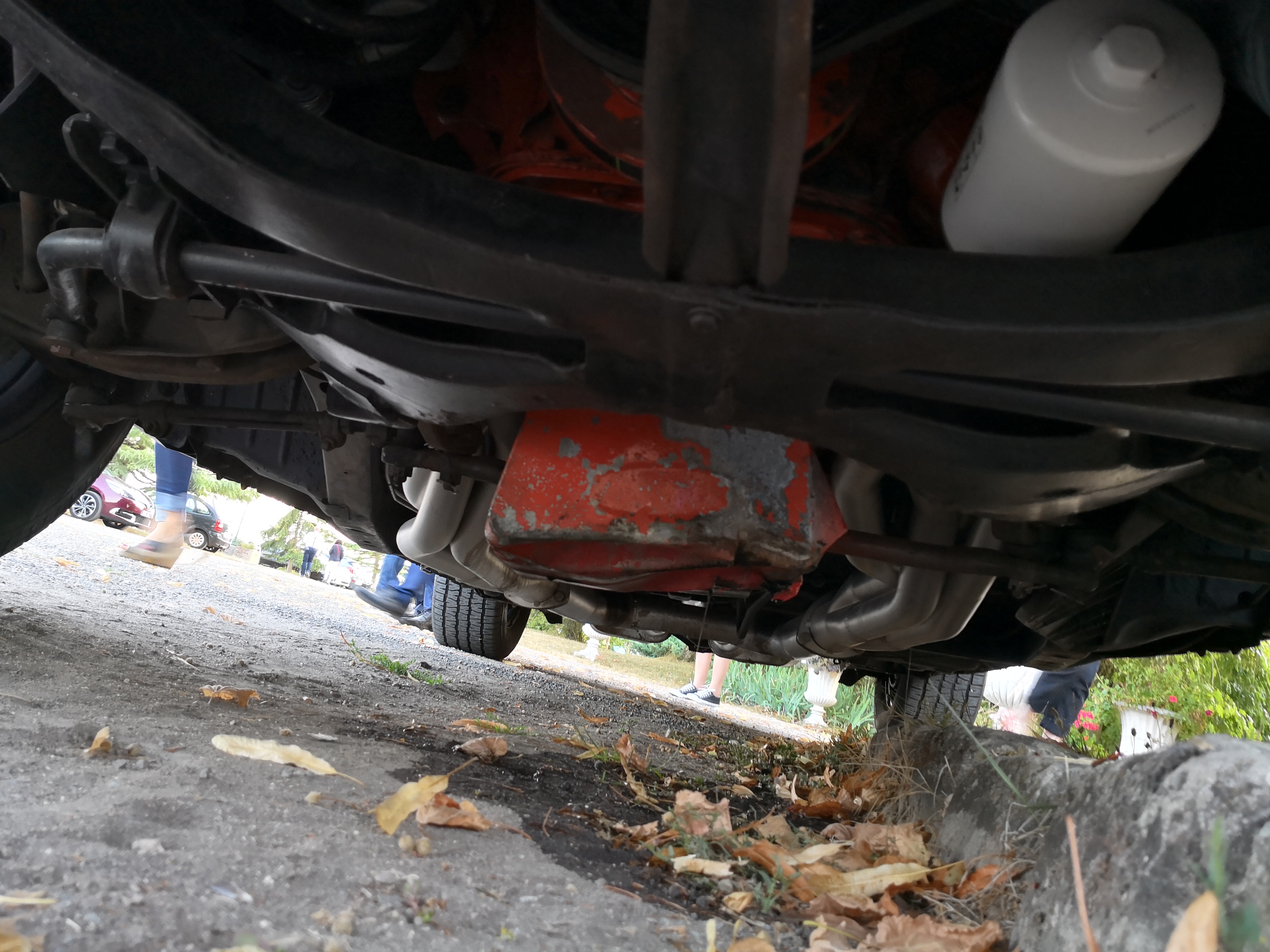 Suite à une faute d'inattention au début d'une soirée de mariage ou j'ai prêté ma challenger de 70, avec 4 personnes dans la voiture j'ai tapé dans le point de fixation central d'un portail (photo 1) avec mon carter d'huile, ayant pour résultat de l'exposer et de perdre le précieux liquide censé rester dans mon moteur... (photo 2). Bref, dégouté, mais il faut passer à la suite, en racheter un et le faire poser.