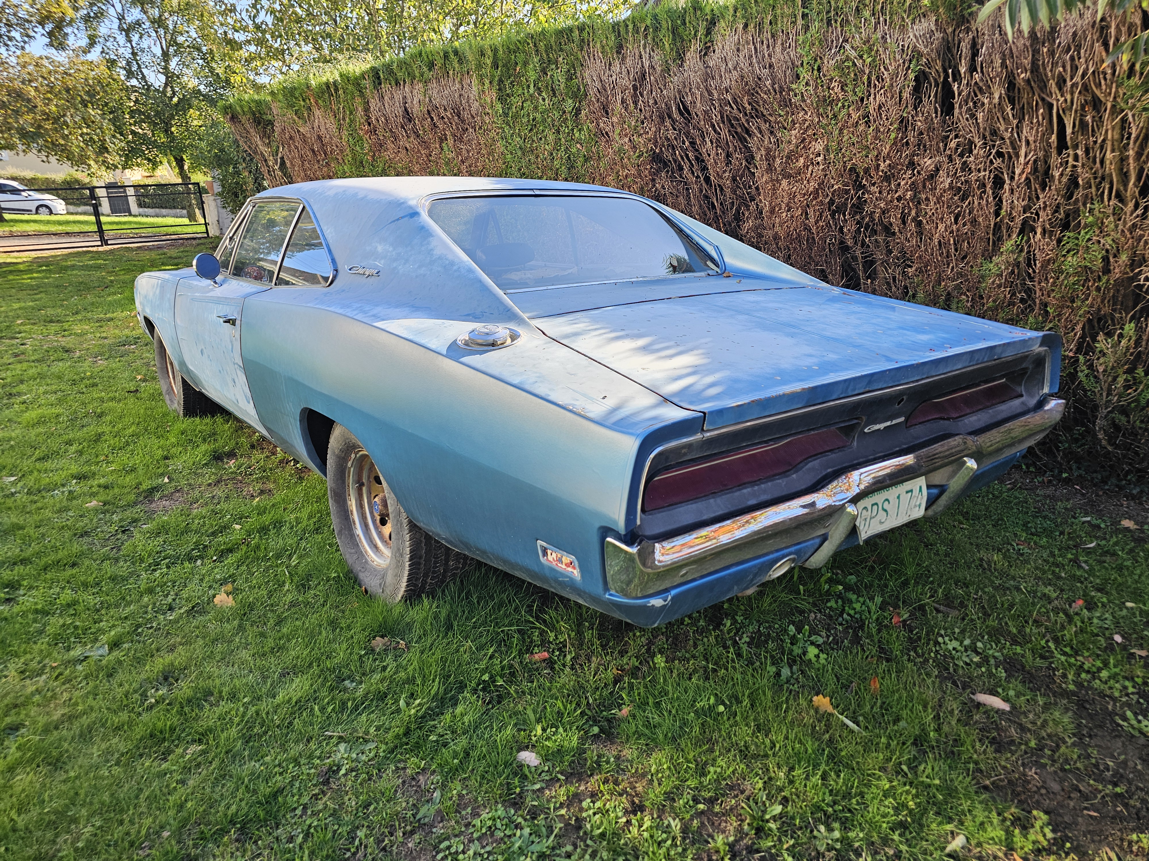 Une Charger de 1969 avec un 383HP et une boite 4-rapport A833. Le moteur est de 69 mais pas matching number, idem pour la boite (de 67 je crois)
