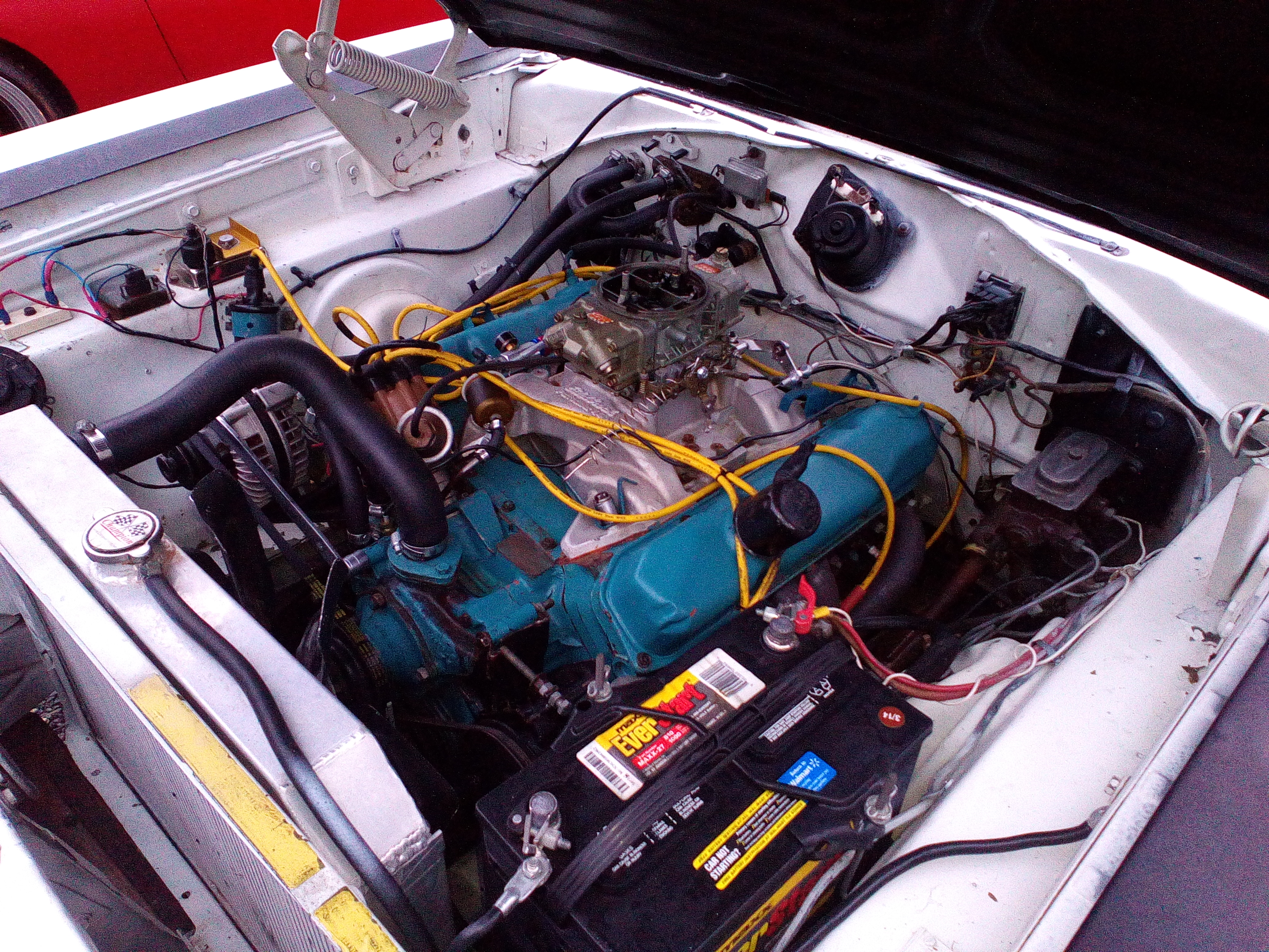 ouais, il va falloir que je fasse une petite beauté au compartiment moteur, si j'ai un petit filtre edelbrock, j'aimerais acheter un mopar perf ou un d'origine, mon carbu n'a pas de starter, est il possible d'en monter un?