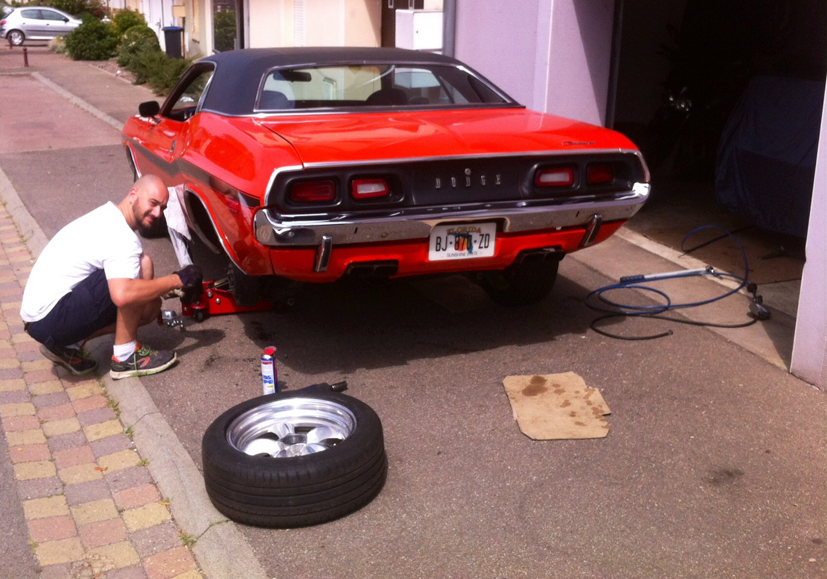 Cette aprèm , changement des boudins à l'arrière avec le frangin et une ou deux photos de la bestiole devant la maison !!!!!