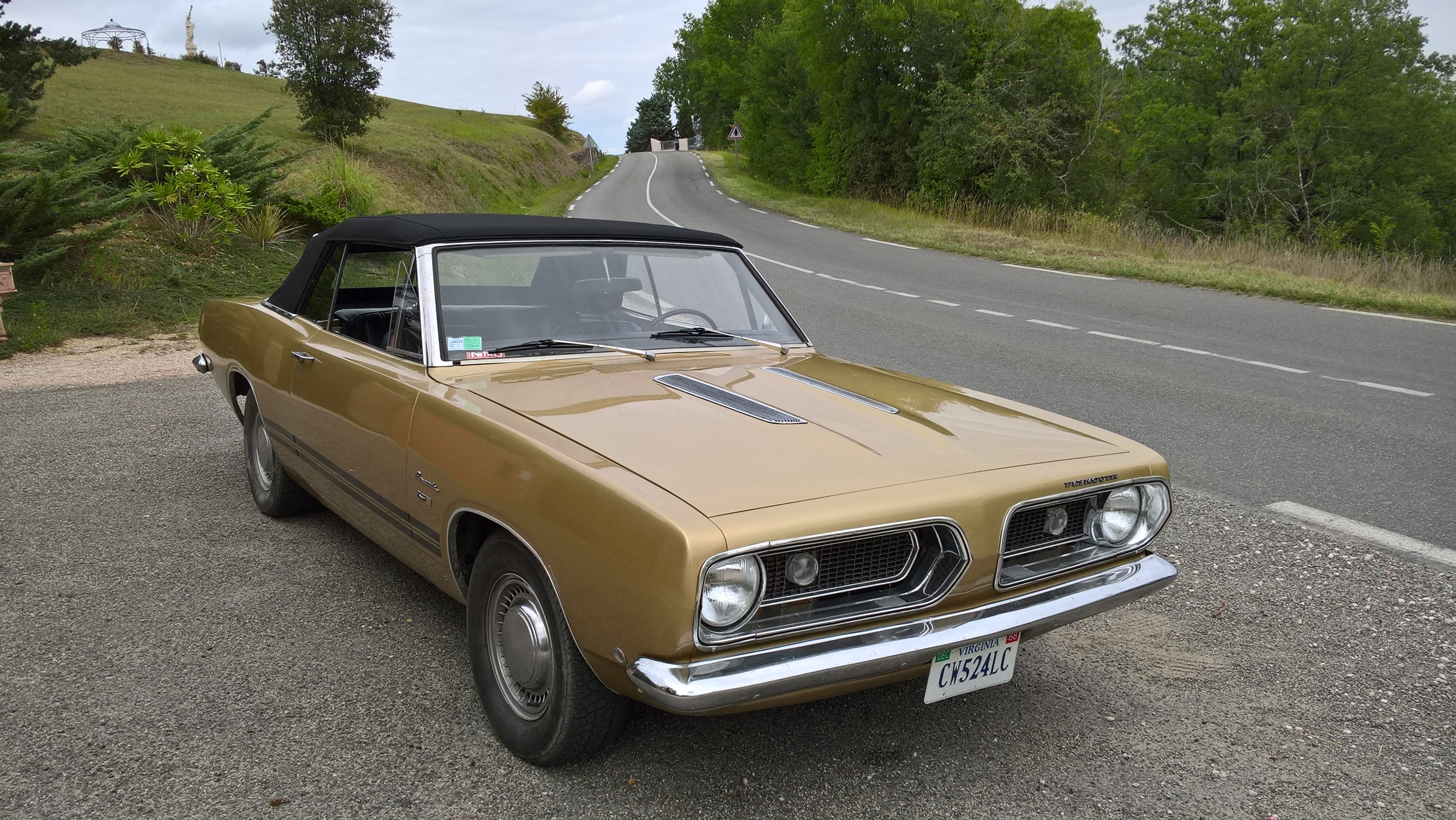 Possesseur depuis 2013 d'une Plymouth Barracuda convertible 318 de 1968, je me joinds à vous et je suis content de pouvoir vous présenter ma belle .