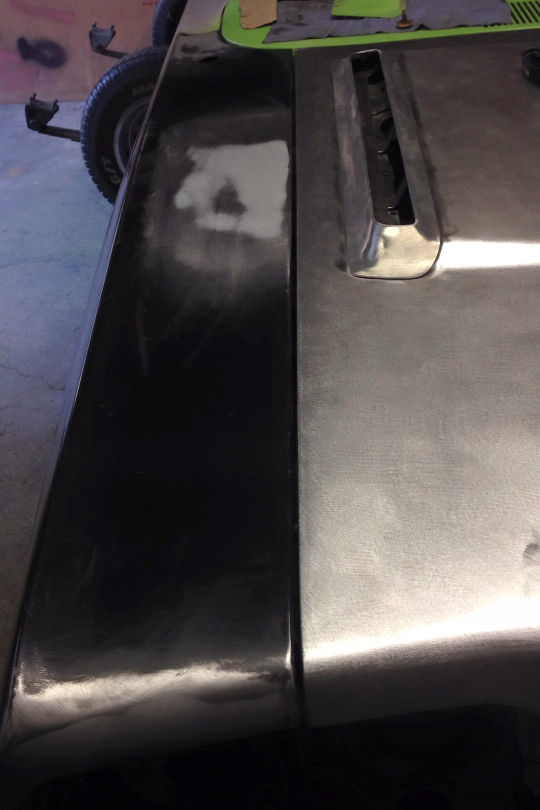 Une fois remontée sur la voiture après meulage.<br />Le gap est correcte 4-5mm tout le long. Un poil plus serré en haut mais beaucoup miex qu'avant!! dommage on a pas pensé à prendre en photo avant :\