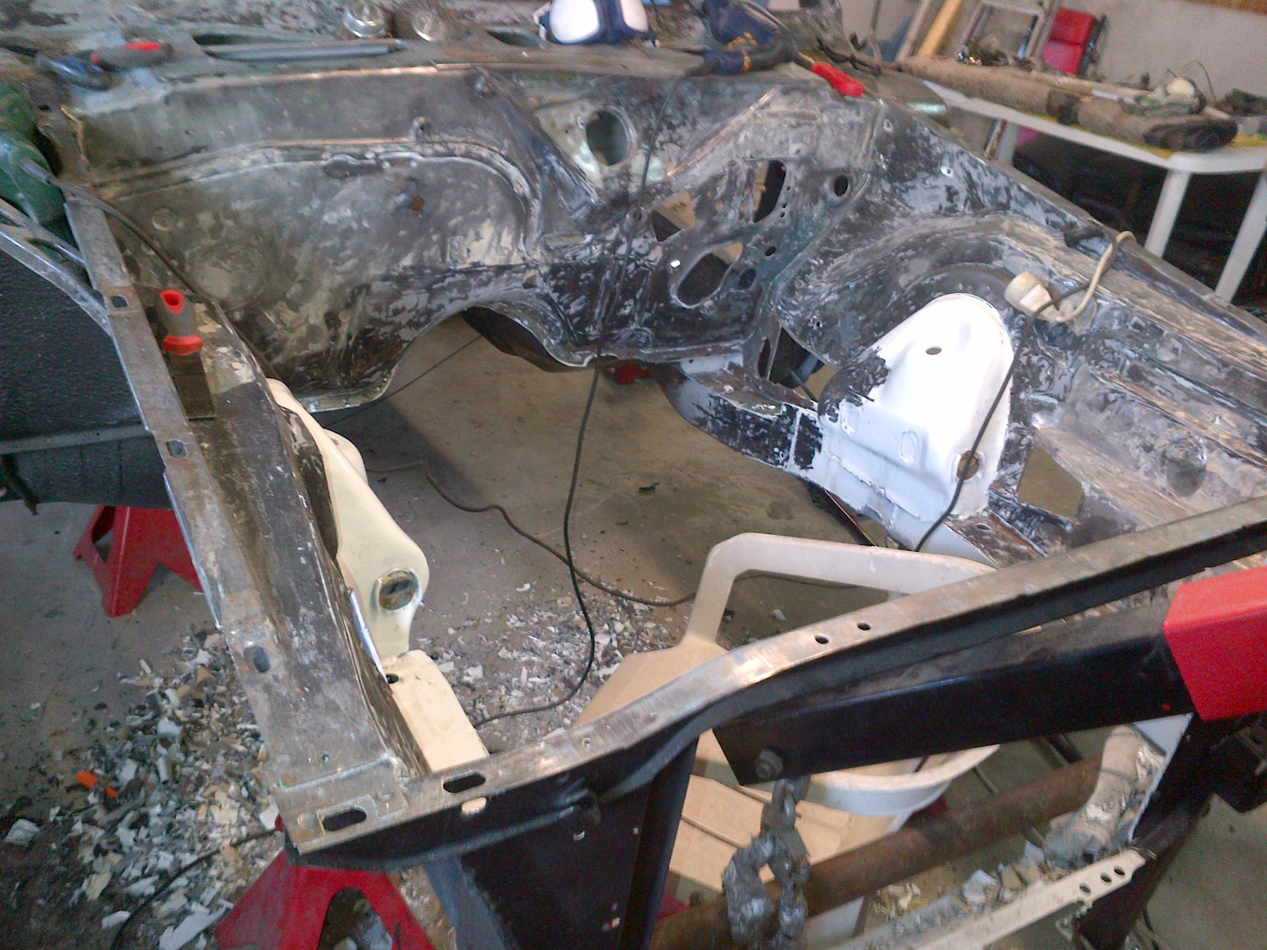 après avoir gratté tout le dessous puis le compartiment moteur car je voulais la faire sabler, il reste si peu de matière à gratter que je vais la finir à la main et économiser des €€€