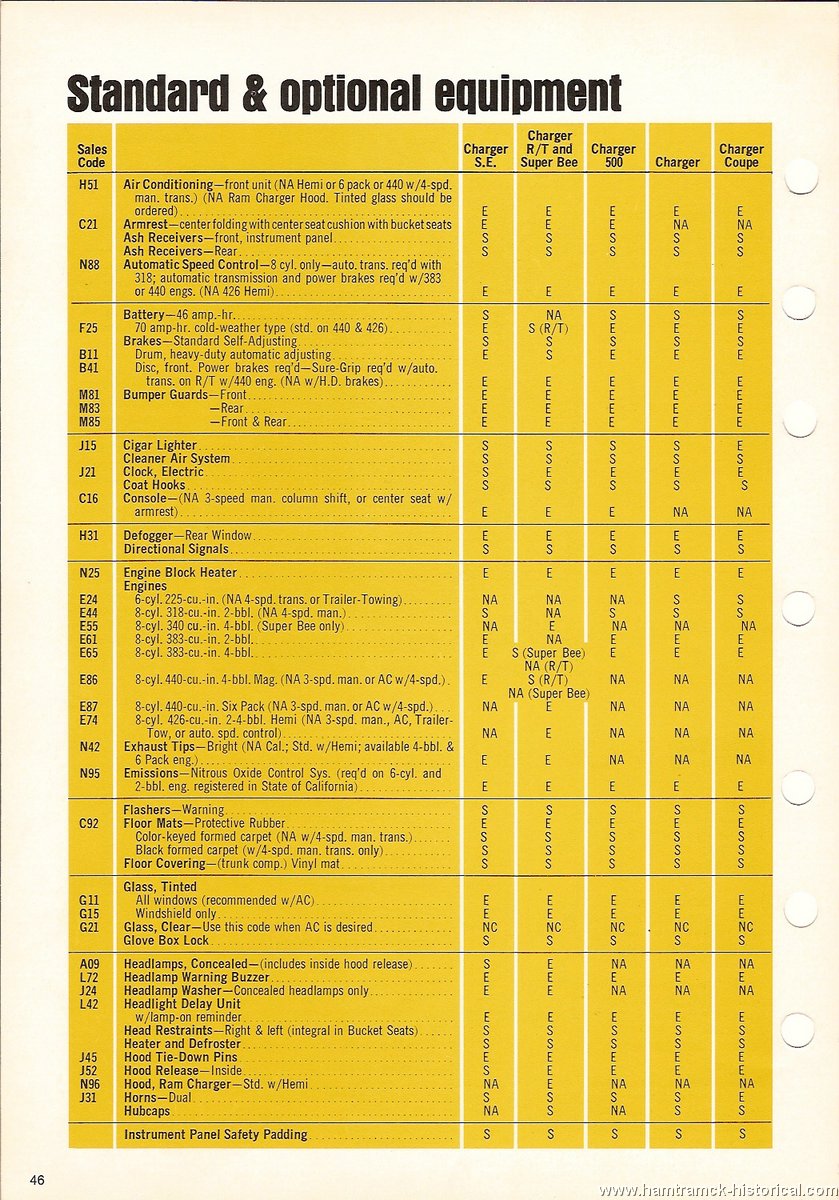 Tu trouveras sur mymopar ou allpar le tableau des options d'époque avec leurs codes.