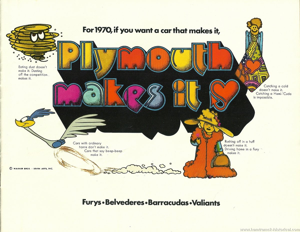 Les pub psychédéliques ou "cartoonesques" sont surtout le fait de Plymouth (chez Dodge ils étaient déjà un poil plus sérieux).