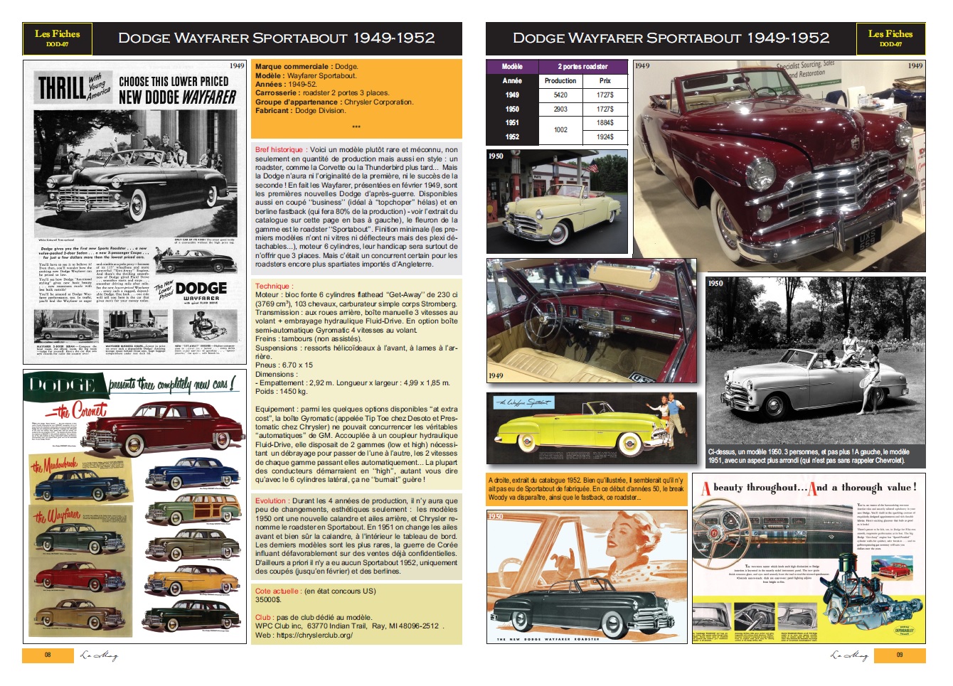 Mag 38, pages 08-09.phil64 a écrit :En 2003 j'avais fait une "fiche" pour la revue de l'ACCF sur les Wayfarer roadster. Je l'ai refaite pour "Le Mag" il y a quelques temps mais je sais plus où elle est.