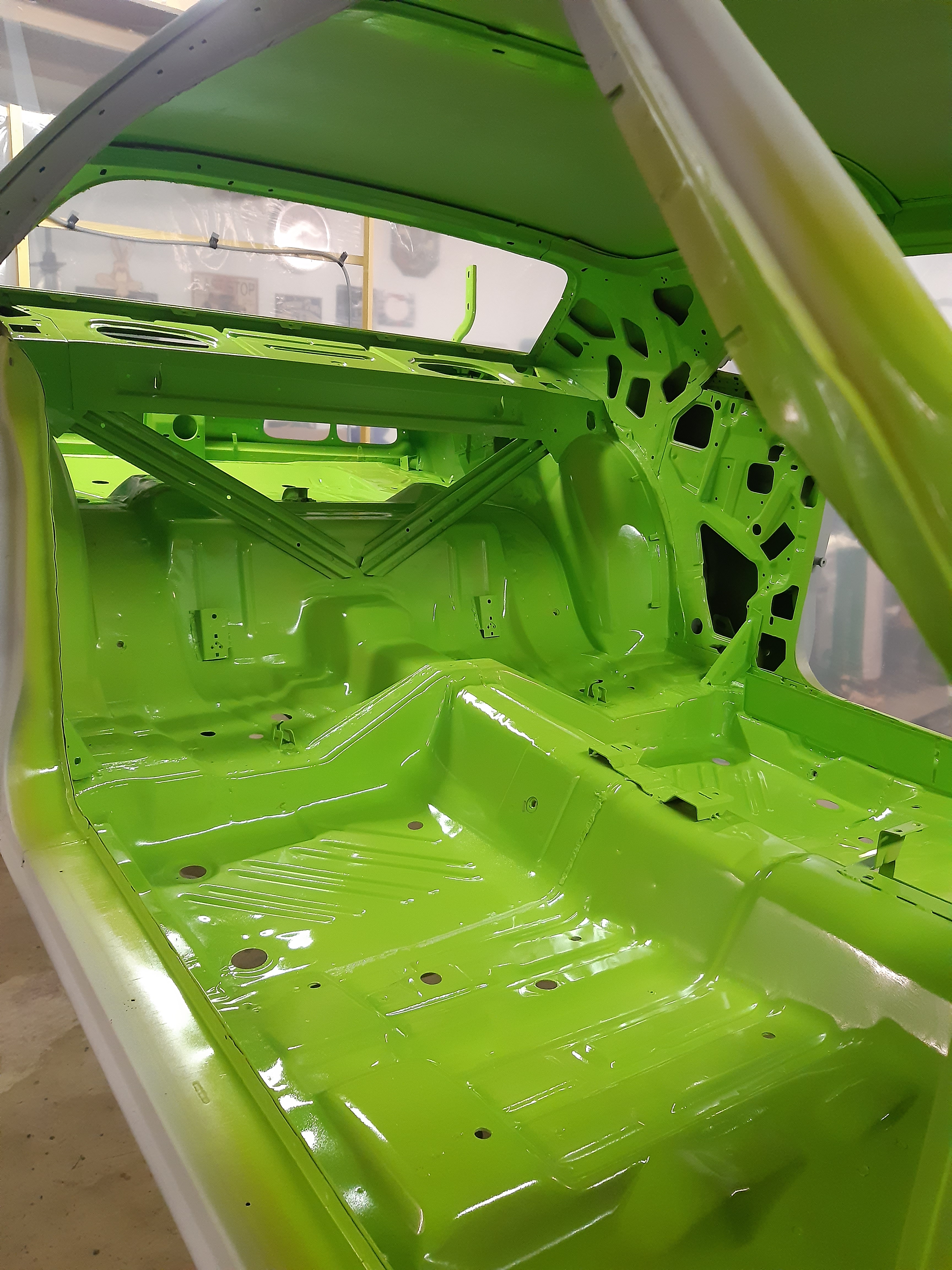 En plus, je trouve aussi que le vert pâle d'origine (F1 pale green) est très beau, et réellement plus original qu'une teinte "high impact" qu'on voit trop souvent sur les Mopar. Des Challengers lime green, tu en verras d'autres, des pale green jamais je pense.