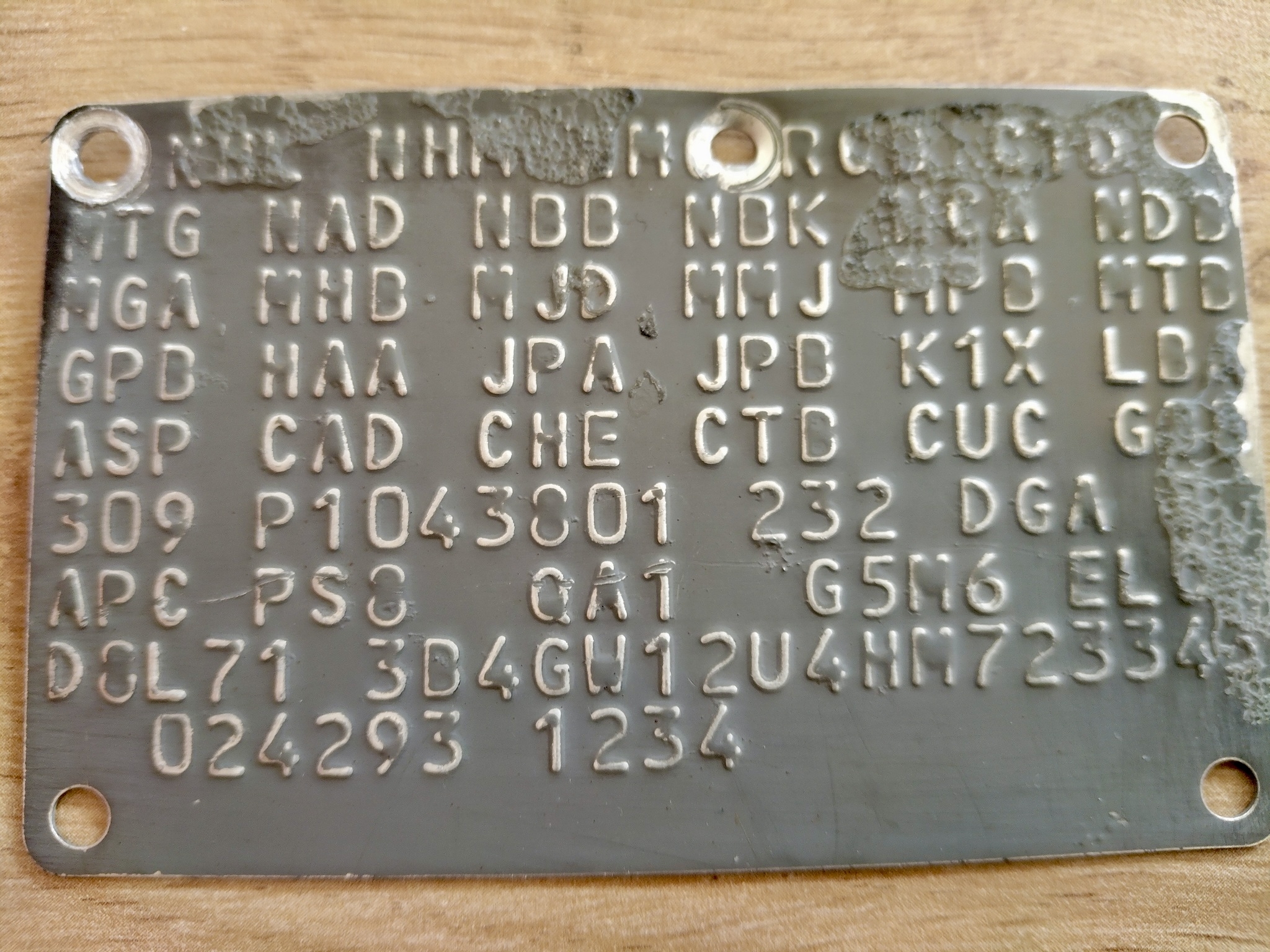 J'ai essayé d'identifier les caractères manquants en regardant la plaque par derrière