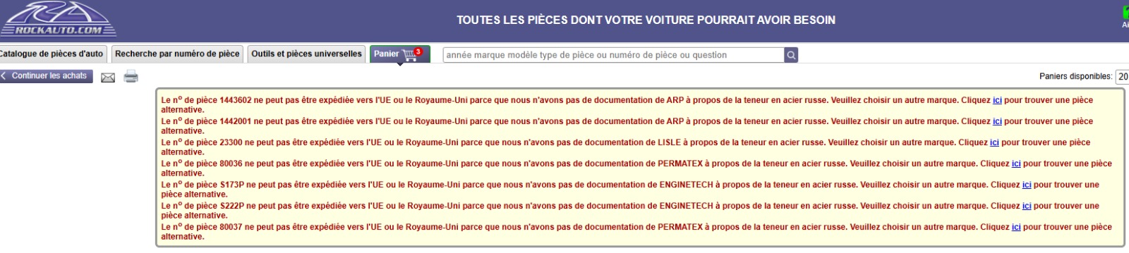Petite mauvaise surprise ce soir pour passer une commande chez Rockauto, vous en pensez quoi ? Et quelle seraient les autres solutions ?