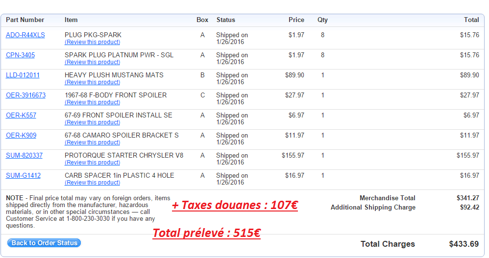 Et bien pour 341$ de pièces, transport de 93$ et douanes de 107€ !! :?