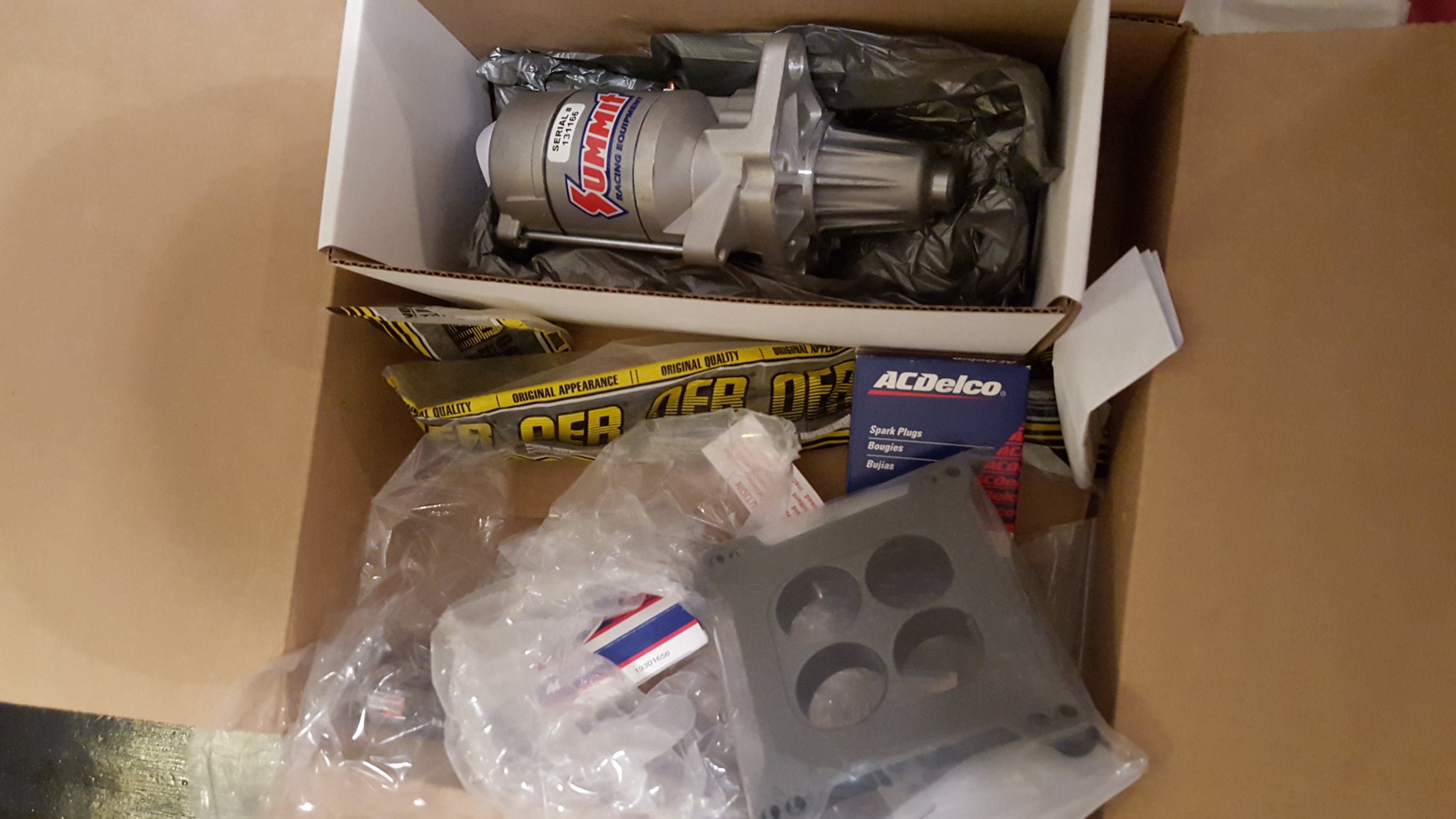 Hop, mini-démarreur, spacer de carbu, bougies neuves et spoiler de Camaro reçus !
