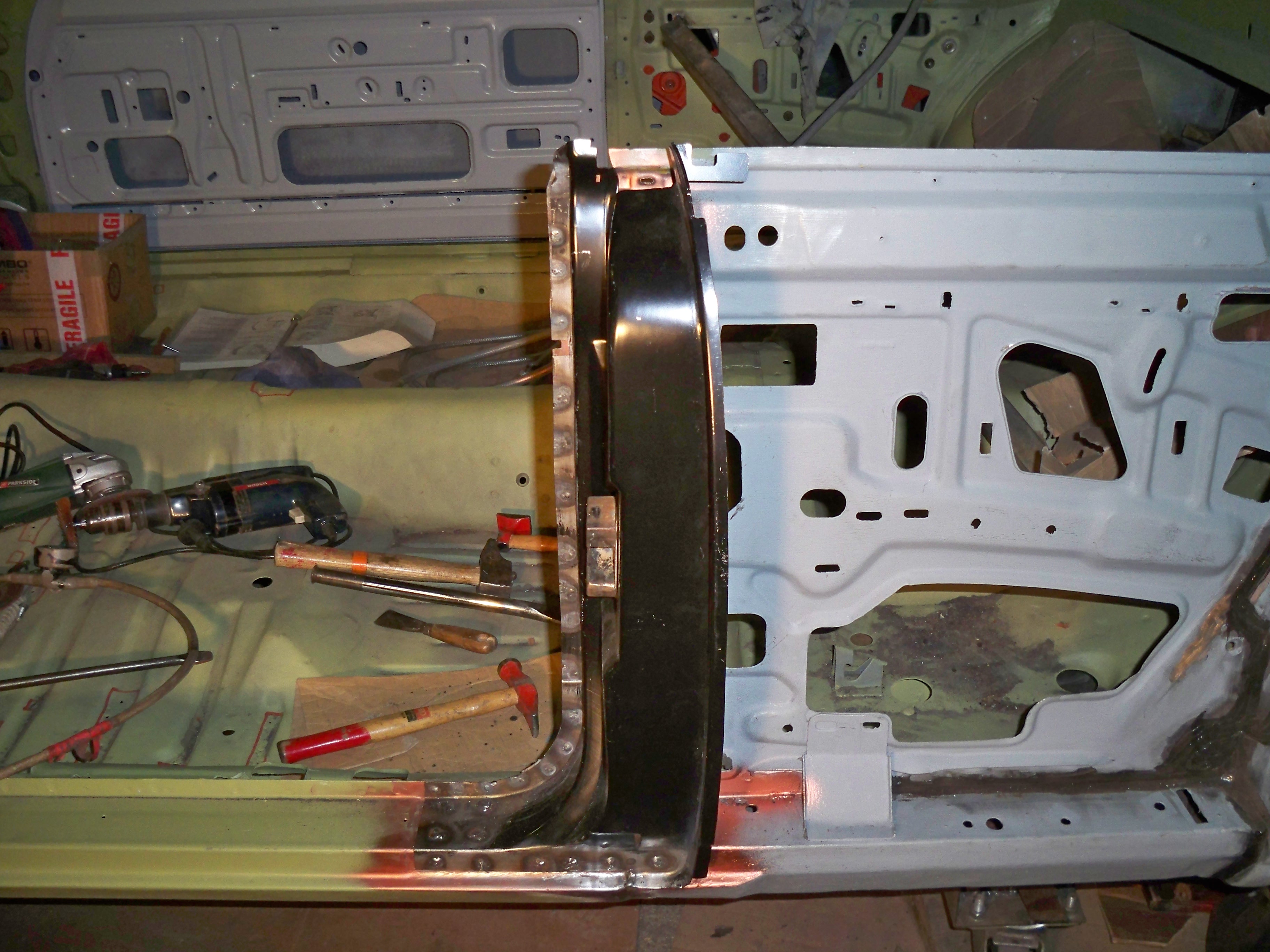 Ensuite avant de retirer totalement les ailes arrières, on a remonté les ailes avant avec les portes pour tout aligner proprement comme ça on avait une base pour remettre les ailes arrières et les ajuster au mieux pour les aligments avec les portes et le jeu entre les portes et les ailes.