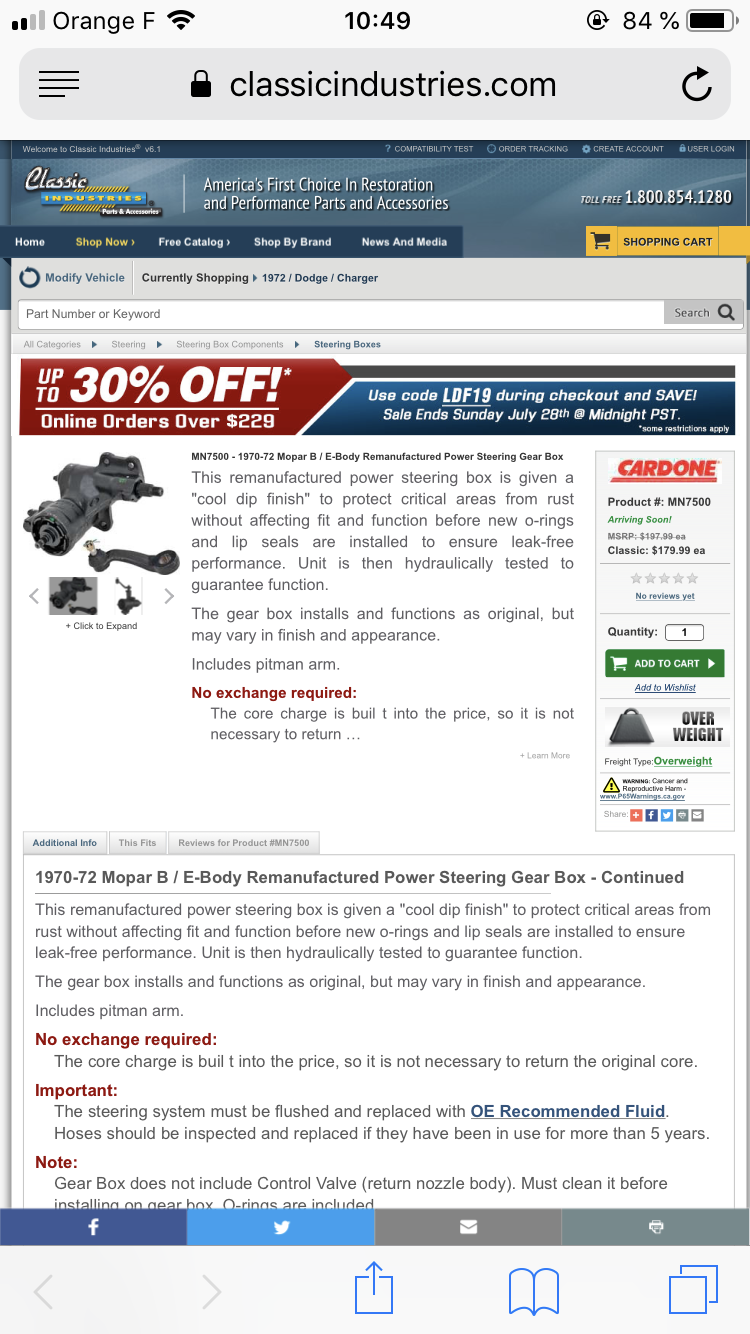 Mouais c’est dans les prix , faut pas rêvé de toute façon , les pièces Mopar c’est chère mais bon c’est mieux que de roulé en Mustang...