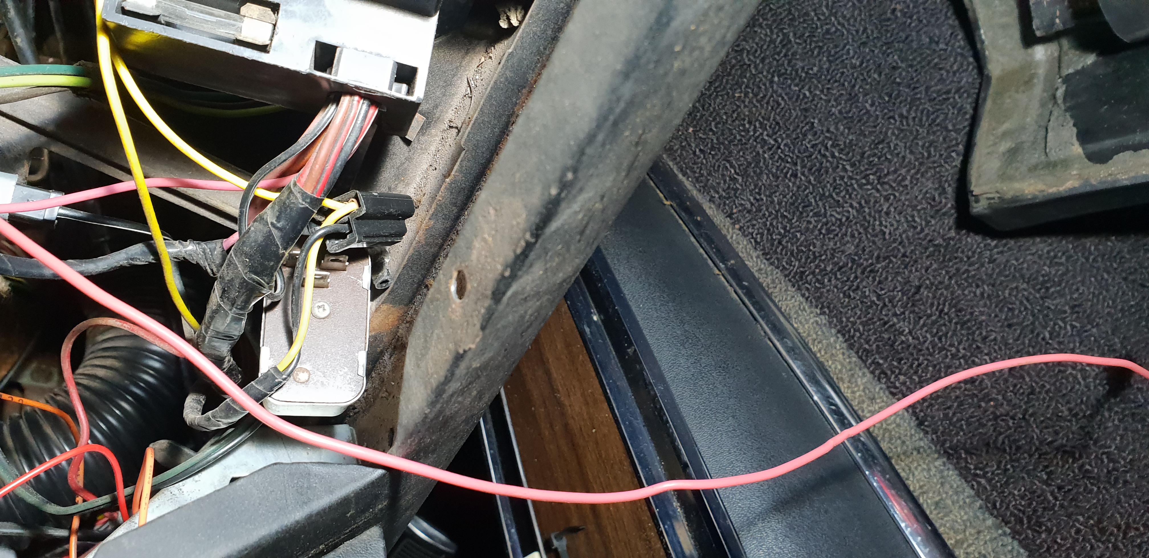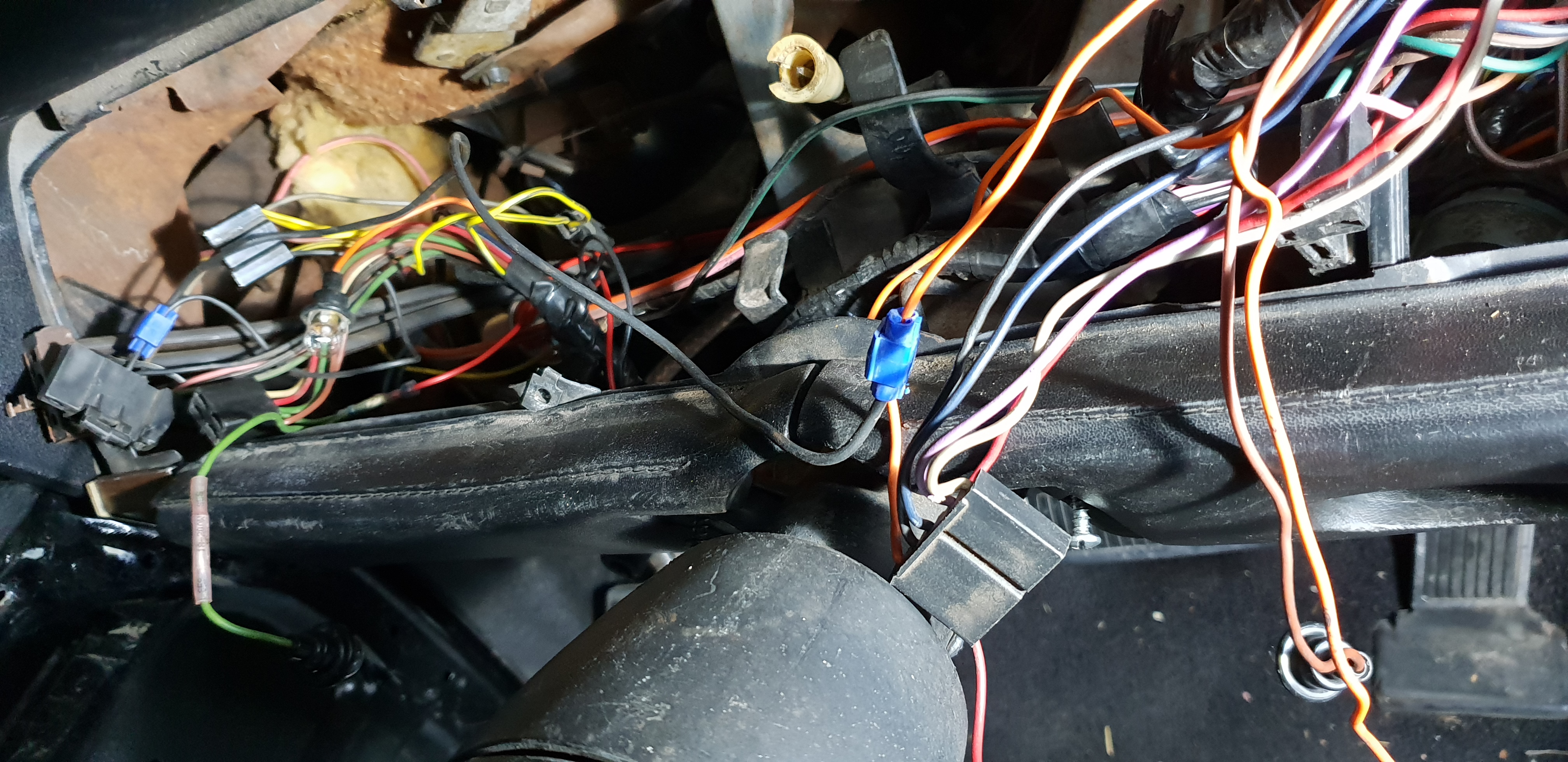 la centrale clignotante des warnings qui pendait, pareil pour ce qui semble être un rappel (buzzer, son ?) de lumière allumée - semble être une option - avec un éclairage de courtoisie du neiman (non installé, qui pendait aussi)