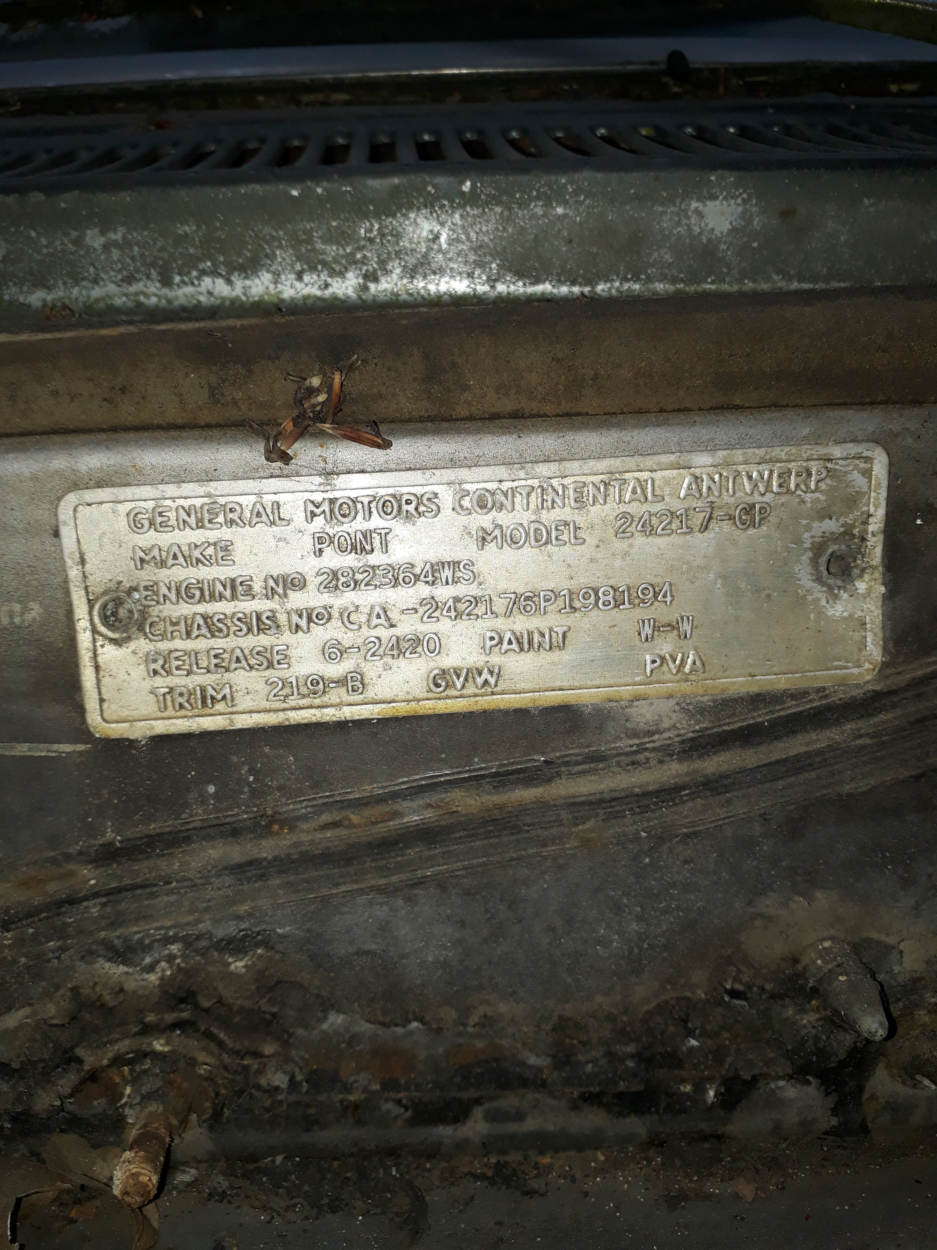 Confirmation qu'il s'agit d'une GTO par le code "242", et puis vient la surprise avec le code moteur WS désignant le 389 TRI-POWER (6bbl), Boite 4 manu.