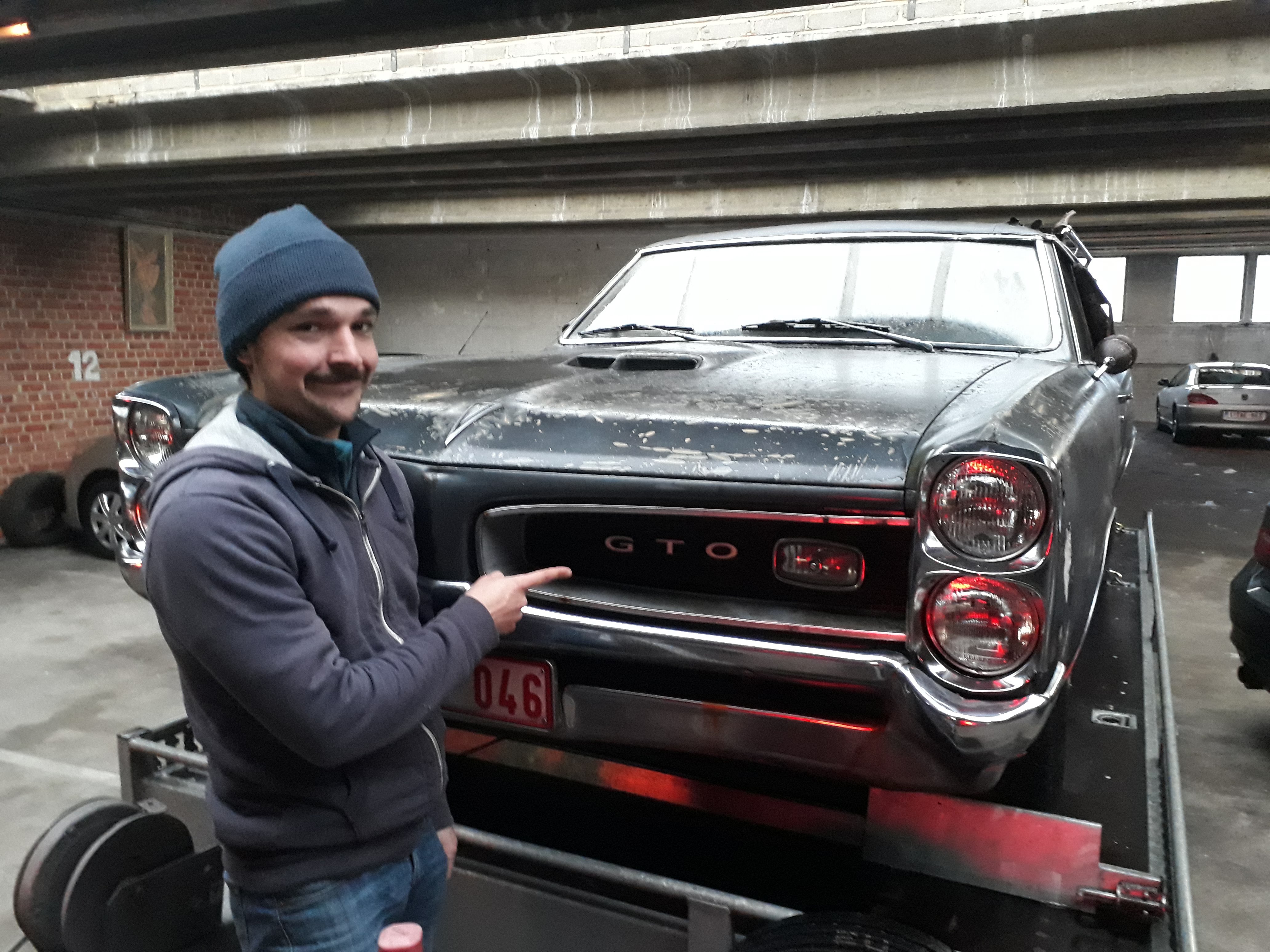 Cette Pontiac GTO fut, comme ma Lemans, vendue NEUVE en Belgique en 1966. Les deux portent la plaque d'identification Anversoise et sont équipées d'un compteur kilométrique. Elle furent toutes deux produites dans la même usine, à 6 mois d'interval, toutes deux en coupé sans montant, toute deux de la même couleur "platnium".